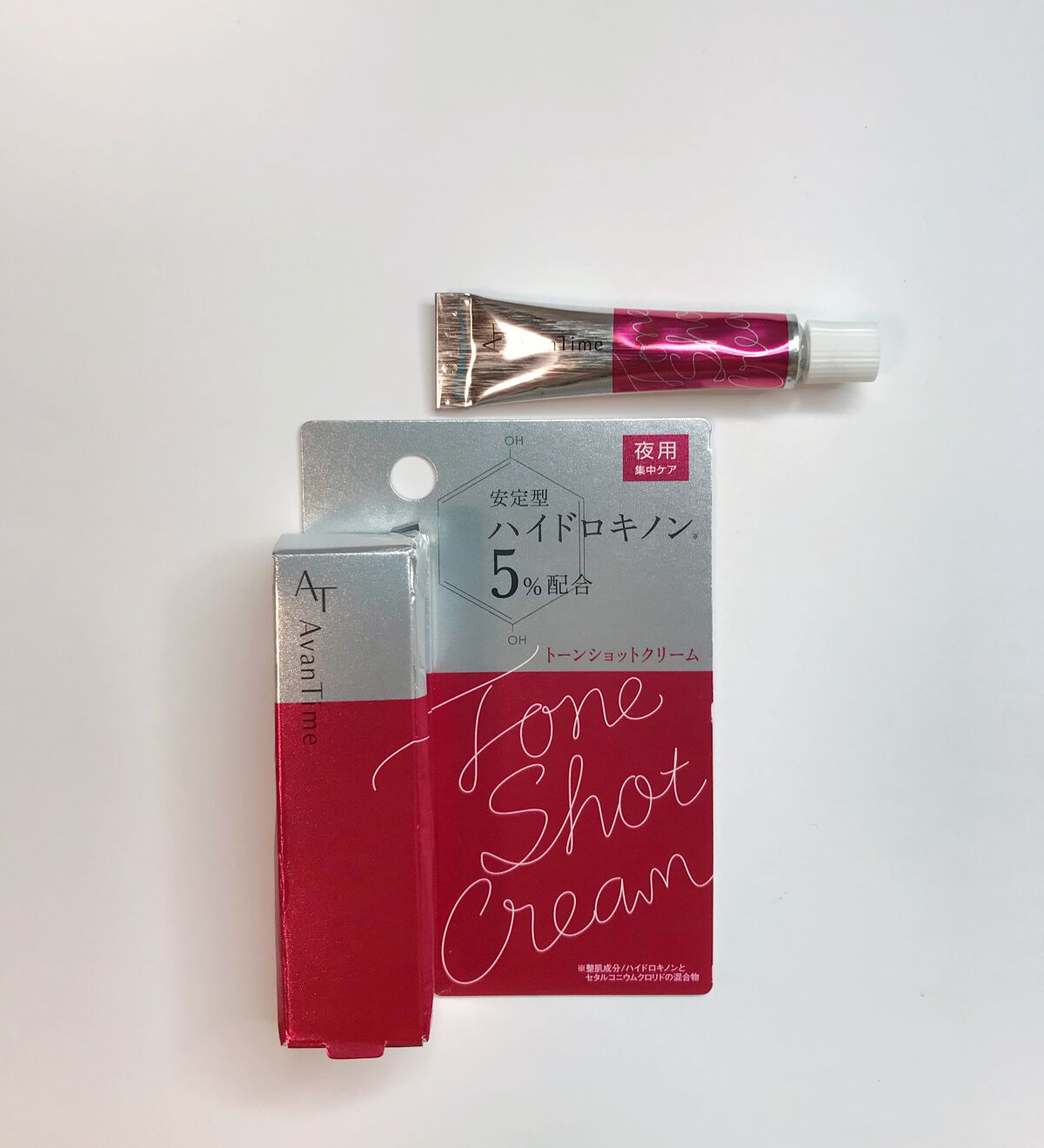 - 「アバンタイム トーンショットクリーム」は安定型ハイドロキノン SHQ-1を5%配合したクリームです。成分が徐々に溶け出しターゲットエリアにアプローチする製品設計であるため、肌にやさしく持続的な作用が期待できます。滑らかで密着しやすいクリームタイプなので、気になる部分を集中的にピンポイントケアすることが可能です。夜のスキンケアの最後に、お肌の気になるポイントにご使用ください。