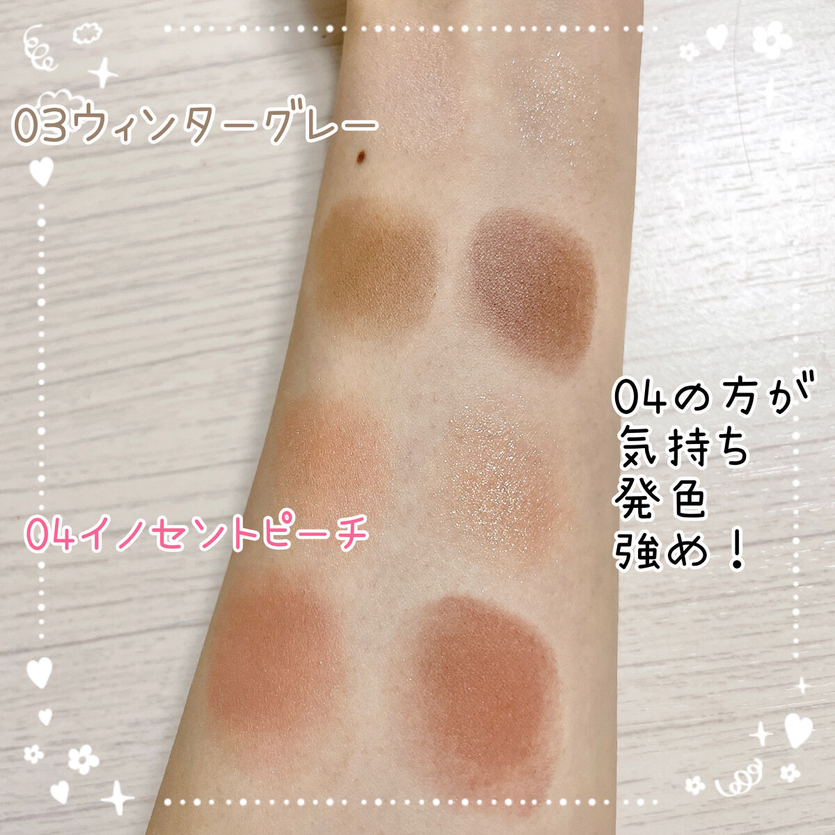 - 2021年3月15日(月)予約販売開始 色×光×質感を1つに詰め込み、毎日のアイメイクのバリエー ションを膨らませる4色のアイシャドウパレット。 ・発色・質感を調整しやすいチップ&ブラシ ふんわり仕上げたいときはブラシ しっかり発色させたいときはチップを その日の気分に合わせたアイメイクが楽しめる ・ 毎日のメイクが楽しくなる4つのカラー ・こだわりの3つの質感 シマー・プリズム・マットのテクスチャー それぞれのカラーがしっかり色づきピタッと密着 ●保湿美容液成分:セラミド・ヒアルロン酸・モモ葉エキス 配合。 ●ミラー・チップ&ブラシ付き。
