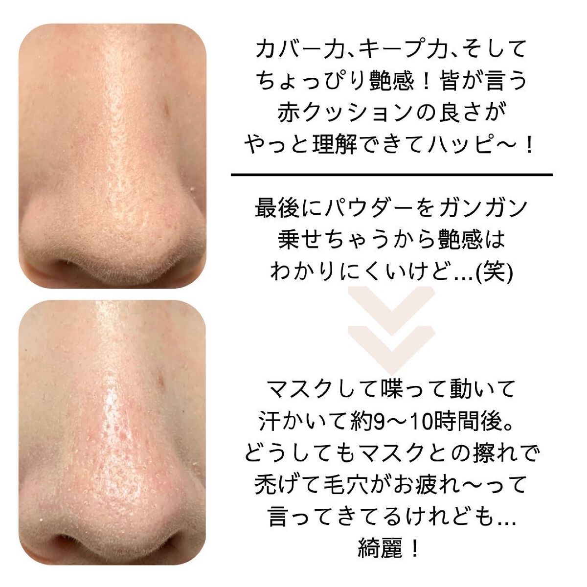 公式でオススメされている使い方は、1プッシュ分を手に取り持っているスポンジやブラシで「頬→口周り→鼻→目周り」の順番に塗布 だそうです。 塗布後に乾燥とかは感じずに1日過ごせたけれど擦れには強くはないかな皮脂には強い感じはした!💪🏻💗 素肌感を残しつつ程々に良いカバー力でセミマットな感じの仕上がりになるよ◎