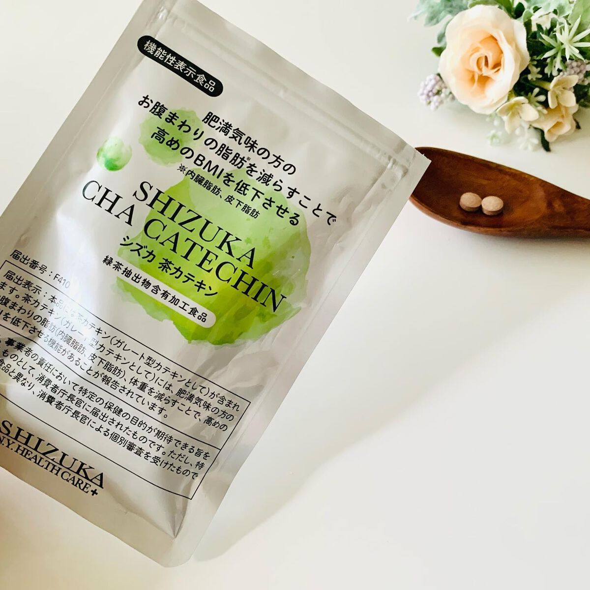 - 【SHIZUKA N.Y. HEALTH CARE】 機能性関与成分ガレート型カテキンと、4種の美のエッセンスを特別配合しました。ガレート型カテキンは、肥満気味の方のお腹まわりの脂肪(内臓脂肪、皮下脂肪)を減らし、高めのBMIを低下させます。 1日2粒、お好きなタイミングで水またはぬるま湯と一緒にお召し上がりください。