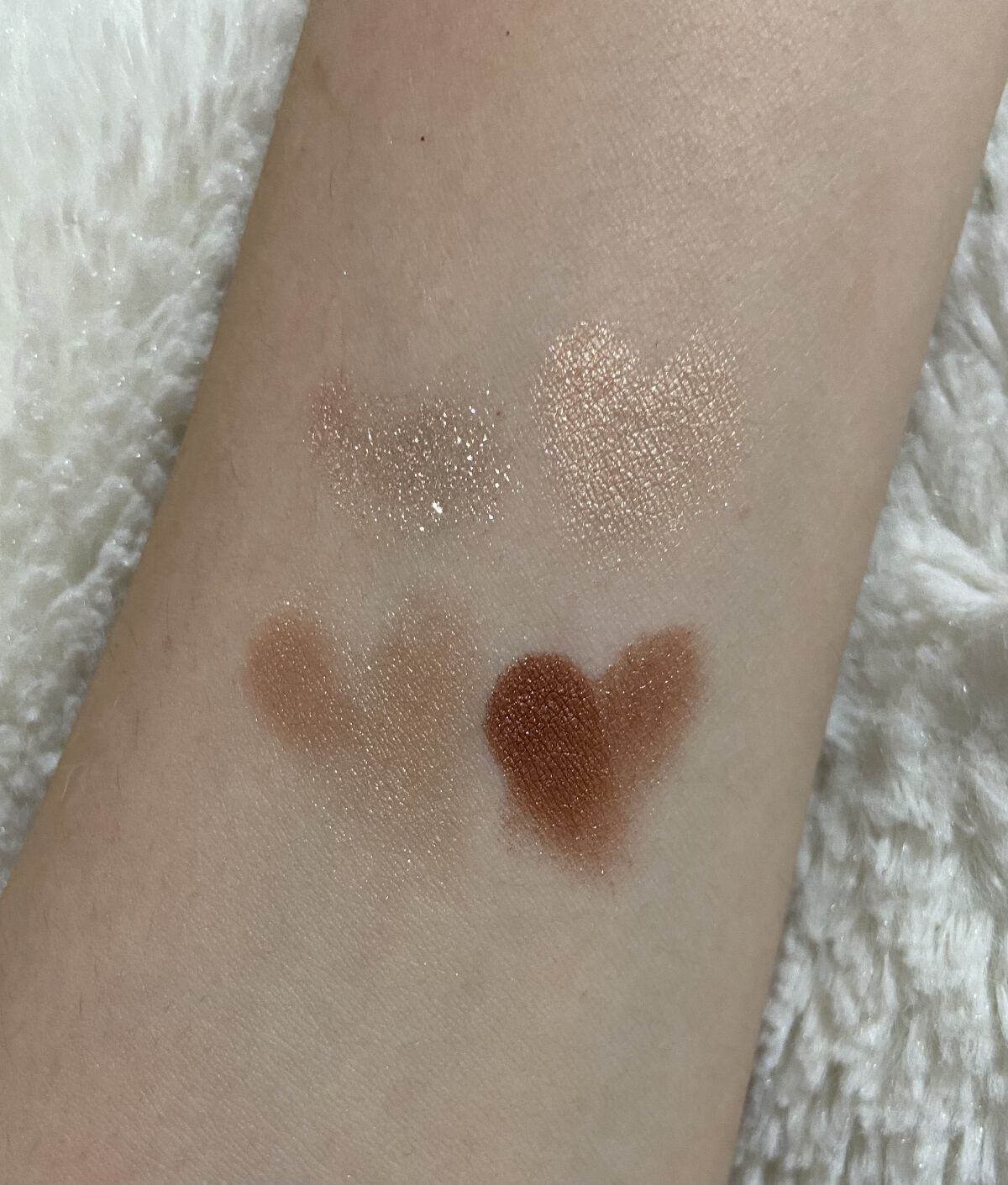 ピーチカラーが可愛いー🍑 左下ピーチをベースに左上のピーチキラキラを重ねて右下ブラウンを二重幅につけたら、右上のラメを涙袋に✨ ピーチピンクとブラウンが使いやすい(。•ㅅ•。)♡ 見ていただき、ありがとうございましたm(*_ _)m