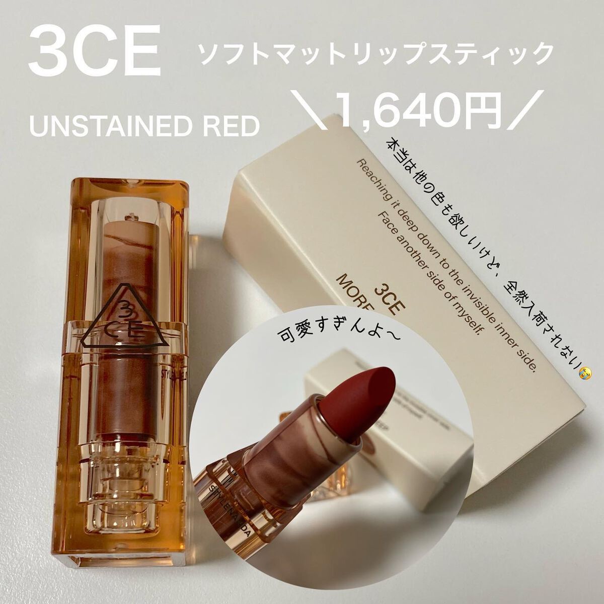 ティントのリップクリームのような感覚です。 青みピンクですが発色が自然なので蛍光っぽくなりません。 密着感があって落ちにくく、しっとり感も続いてくれます。 するする〜というよりはピタッと唇にくっつくような塗り心地。 コンパクトなサイズで持ち運びに最適です。 パールは表面だけで、2回使ったぐらいからラメ無しになっていきます。 個人的には、落ちにくさや塗りやすさはリプモンには勝てないなと思いました。 リピは無しかな〜