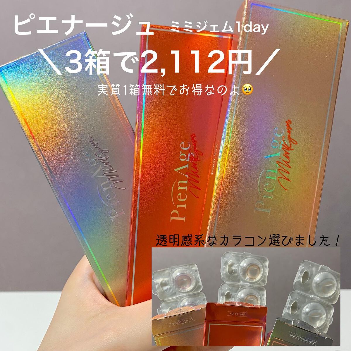 【PienAge】ミミジェム▶MIMIPINKTOPAZ1箱10枚入/¥1,320✂︎✂︎Qoo10のメガ割で一緒に購入したミミエメラルドのもう1つの色です!!これはやばい、、、、、可愛すぎて過去一の推しです😍💗💗...