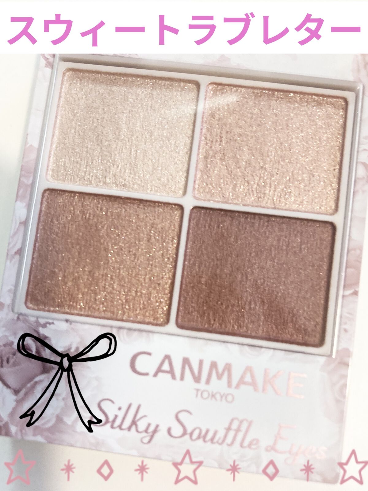 キャンメイクは久々の購入になります。 マット3色、ラメ1色のアイシャドウになっています。 マットですが透明感があり、とても使いやすいです。 最近流行りのオレンジメイクが気軽に楽しめるのも嬉しいポイントです。 ラメもキラキラで可愛い💕