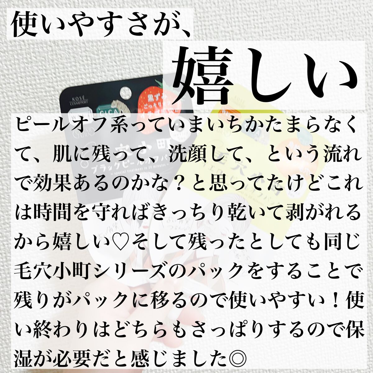 毛穴ケアにと思って購入しました~wクリアターン毛穴小町ブラックピールオフパック使用感毛穴がきゅっとなる感じはありました。少しつるつるしたような感じはあったかも😅残念なところ毛穴がなくったり少なくなるような実感がなくて残念でした~😣泥パックみた...