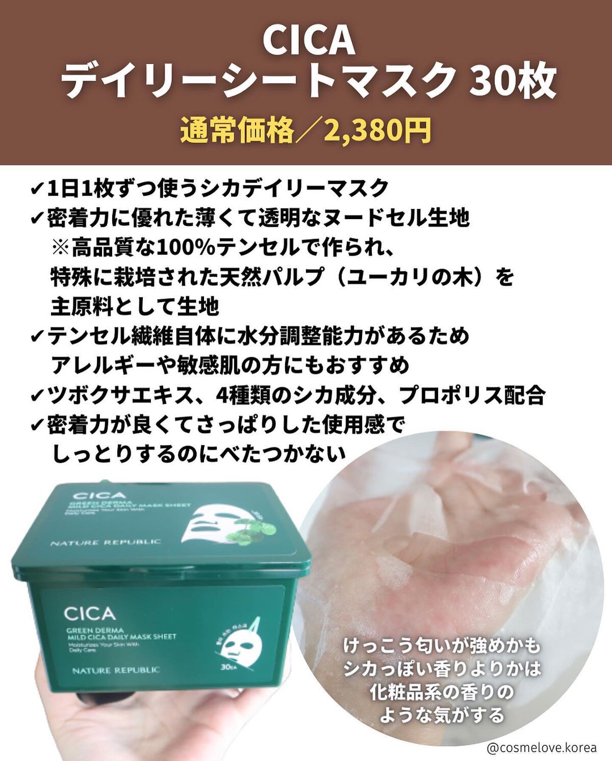 ネイチャーリパブリック グリーンダーマCICA デイリーシートマスク | 2,380円 |