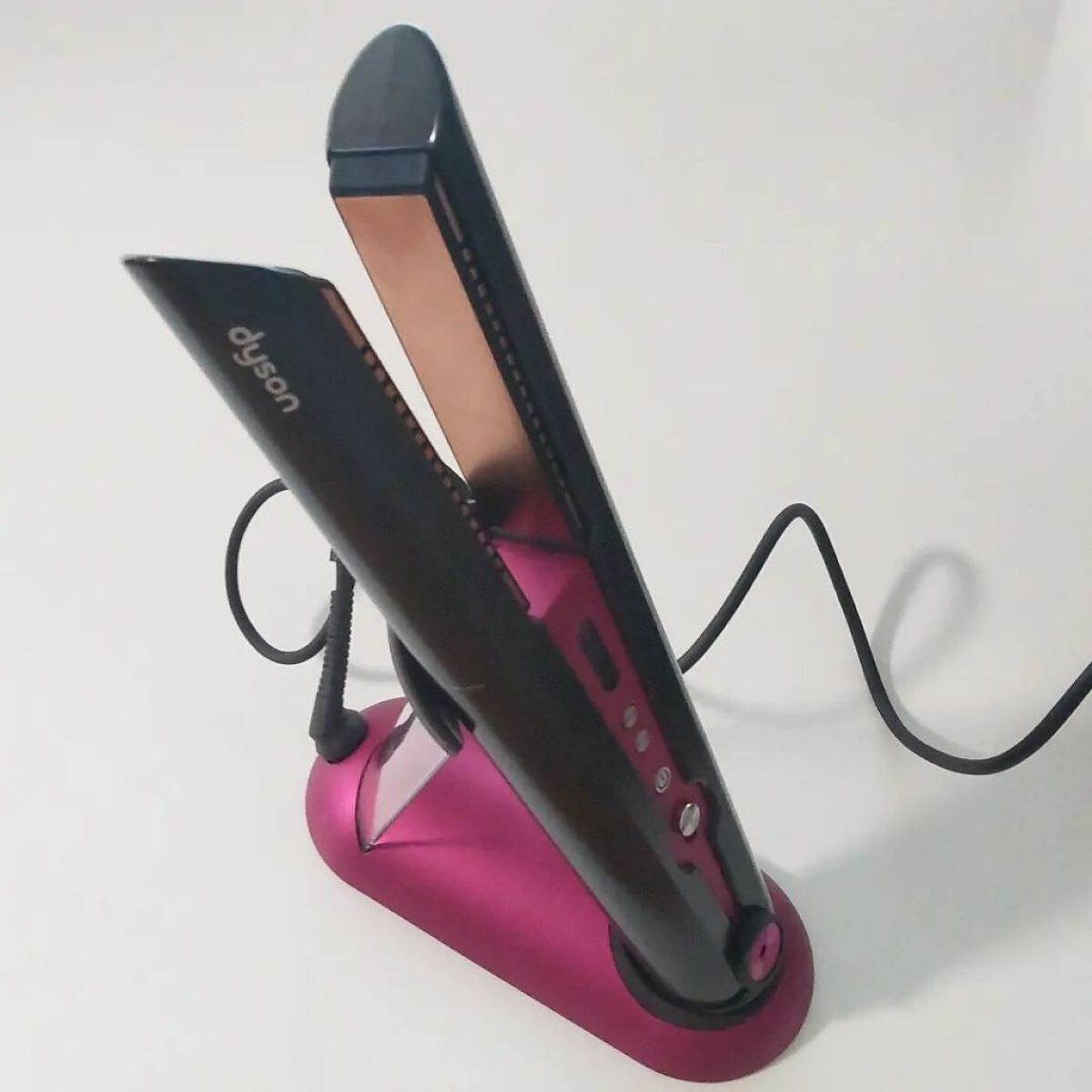 大人気のストレートドライヤー『Dyson Airstrait™ストレイトナー』! これね、パット見はさ、ヘアアイロンかな?と思うでしょ? 高温プレートではなく、風の力でストレートにするんだよ!!すごいよね! ピンク色がまた可愛らしい〜♡ 使い終わったら置いておける、マットも付属で付いてるよ〜! ウェットモードはタオルドライした状態から始めて、 アームを閉じた状態で髪の根元を乾かしていくよ〜!!