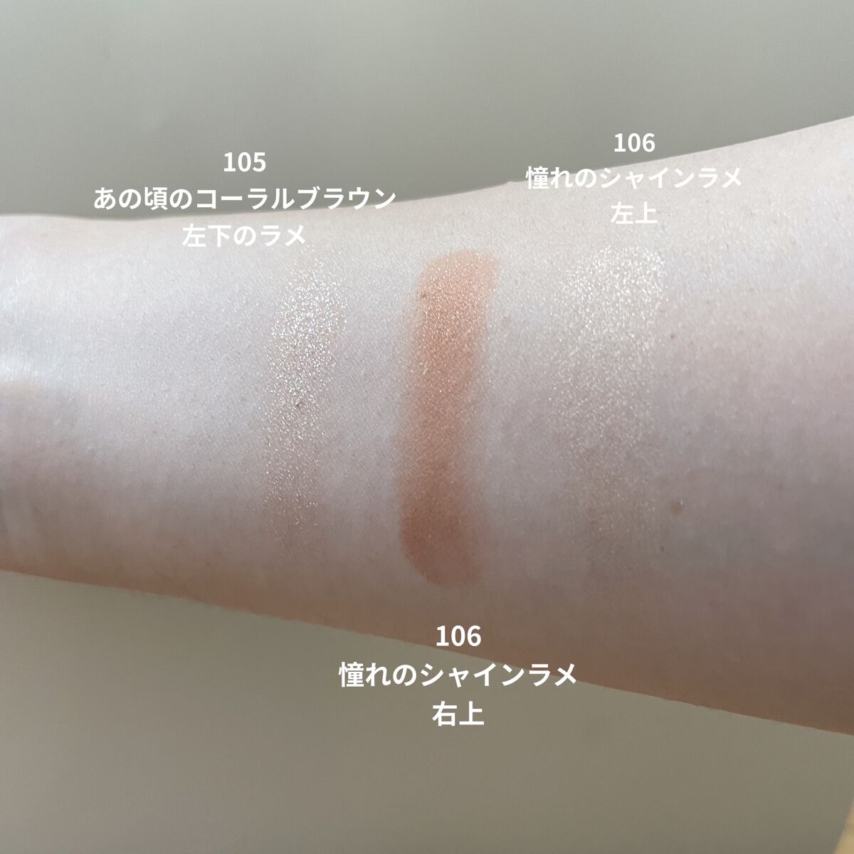 ただ、こういうの使ったことないから、どうやって使っていいか、いまいちわからない……。 公式のおすすめの使い方を見てみると、濃いカラーをアイラインのように引いたり、薄いカラーを涙袋や目頭に入れたり……。なるほどな。 腕に出してみたらこんなでした。薄いカラーはあんまり塗ってるのがわからないかも。あと、ちょっとベタベタしててよれちゃいそうな質感。