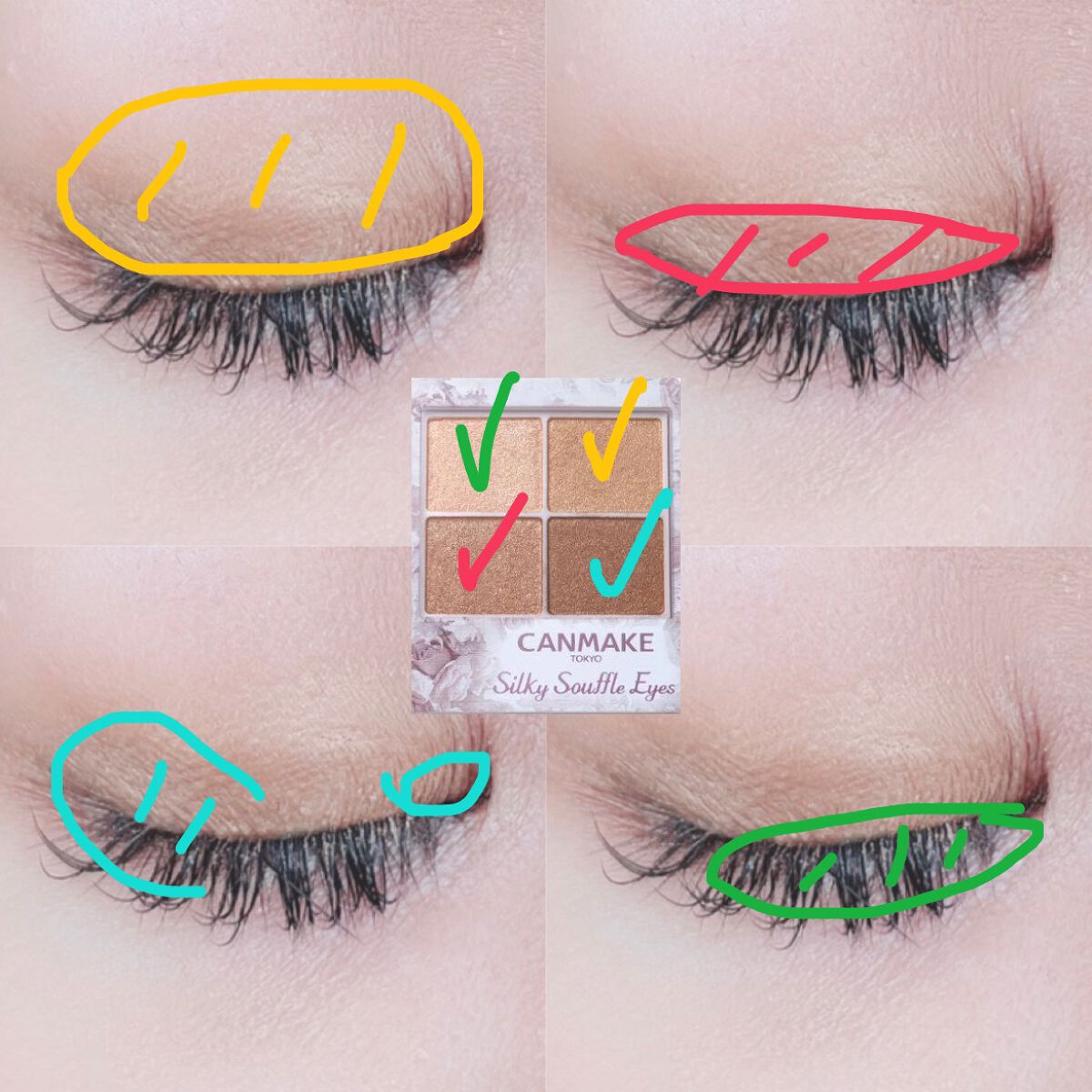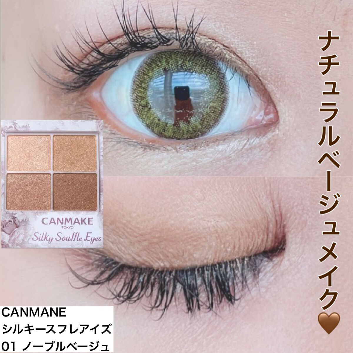 CANMAKEのアイシャドウ🌸#シルキースフレアイズ02番の方をよく使うかも😀他の色も気になる。プチプラなのによかったです😍発色は良いけど少し寄れるときがあるかも。オレンジ系も気になる。キャンメイクシルキースフレアイズ01ノーブルベージュ02...