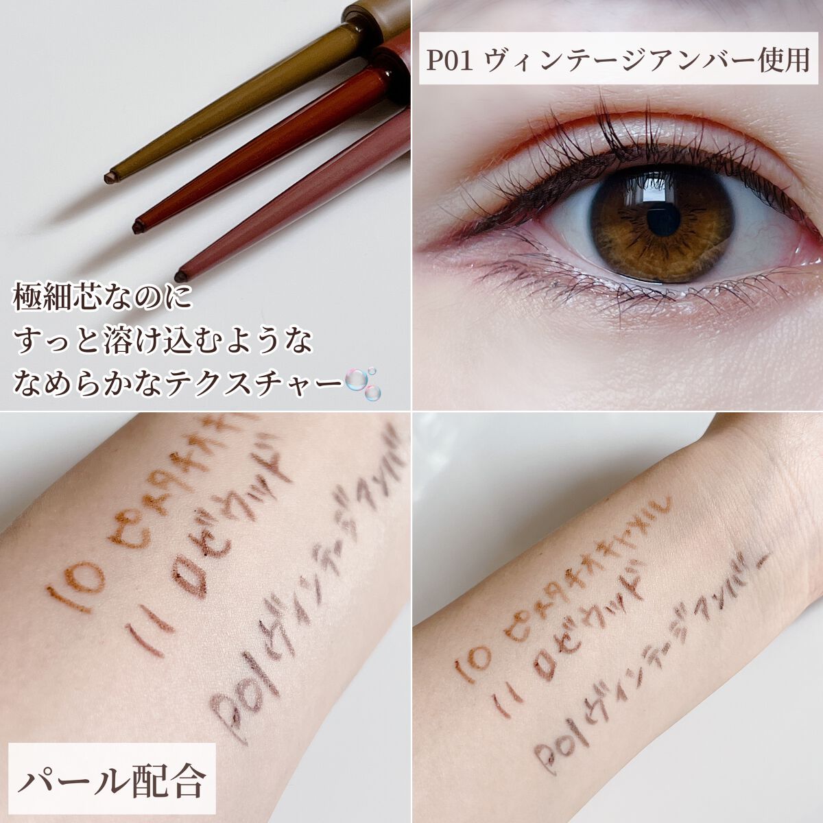 柔らかくて描きやすいジェルライナー キャンメイクのジェルライナーのようにスルスル描けて使いやすいです! ロゼウッドは絶妙な赤み系ブラウン🤍 アイシャドウもピンク系でもブラウン系でも合わせやすい! デイリー使いしやすい! 普通のブラウンに飽きた方や少しメイクを変えてみたいチャレンジしたい時におすすめ◎