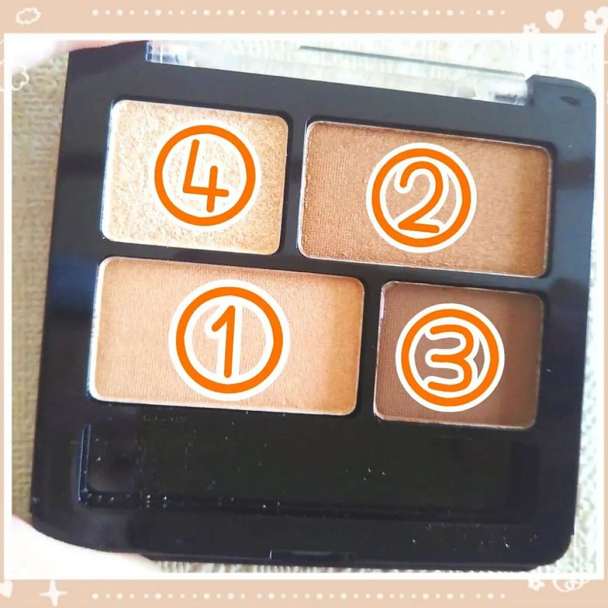 このニュアンスオンアイシャドウシリーズの中でも… キャメルブラウン04がいちばんお気に入りです😁 しかも、このキャメルブラウンは… 左側の3色を使うとオレンジメイクが作れて 右側の3色を使うとピンクブラウンメイクが出来るので とてもおしゃれで素敵なアイカラーだと思います😳 まだまだ下手メイクなので今後もたくさん 練習していきたいと思います😇