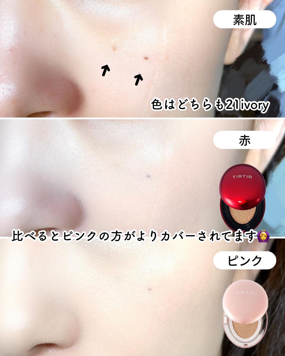 TIRTIRマスクフィットレッドクッションアットコスメ様より提供いただきました♡カラーは21NIVORY明るめだけど白浮きせず、ナチュラルにトーンアップしてくれる✨テクスチャーは軽いのにカバー力が高めで、毛穴や赤みもほどよく隠してくれる感じ✨...