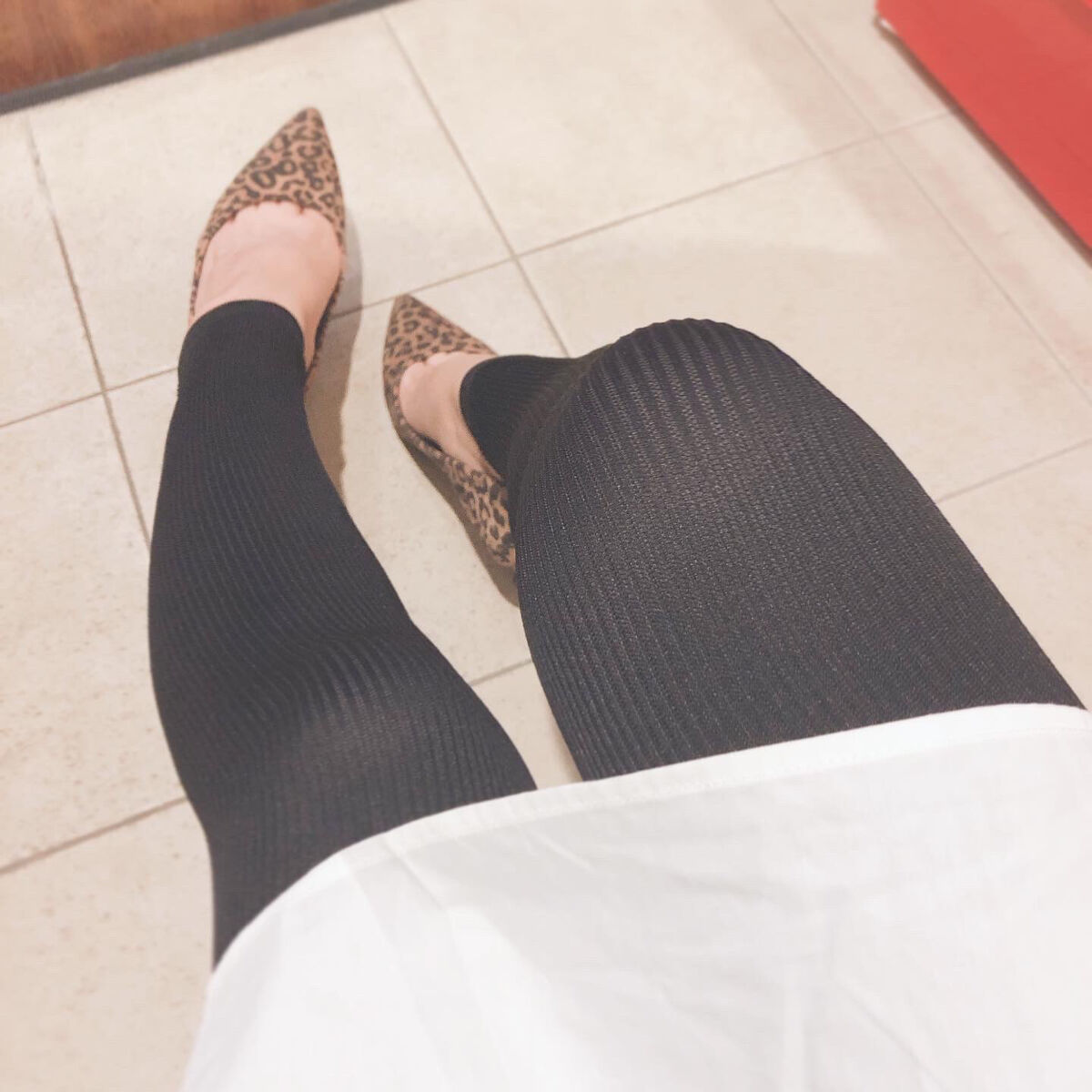見た目はデニムなのに、強着圧❣️ これ1枚で、デニムスタイルと着圧ケアが完結するレギンスです✨ キュッと引き締まる感じですが、キツさは気になりません✨ 足全体を引き締め、骨盤周りも引き締めて、お腹をしっかりおさえてくれる着圧構造になっているそうです。