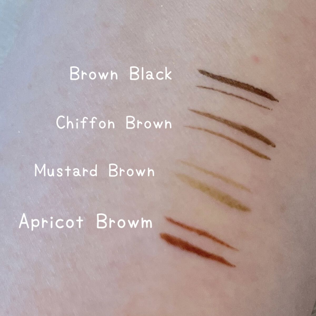 - 筆先までずっとなめらか、目尻で感動するリキッドアイライナー。 必要な量が肌にのる新設計で、まぶたの上をすべるような、滑らかな描き心地。しなやかでコシのある筆が、筆圧のコントロールを容易にし、太いラインも細いラインも思い通りに仕上げます。水、汗、涙に強いウォータープルーフタイプなのに、通常洗顔で簡単オフ。肌に色素が残らない顔料を使用。5種類の美容液成分を従来品の200%配合し、メイクしながら目元ケアまで。 ●ブラウンブラック ※2020年9月12日 バラエティショップ先行発売 ●漆黒ブラック ※2020年12月頃発売予定 ●ナチュラルブラウン ※2020年12月頃発売予定 ●シフォンブラウン 「毎日メイクに透明感と抜け感」 ブラウンでも、グレーでも、ベージュでもないニュアンスカラー。 自然な印影で素の目元を際立て、頑張りすぎない、ふんわりとした目元に。 ●アプリコットブラウン 「じゅわっと血色感。 肌に馴染むおしゃれカラー」 温かみのあるアプリコットがじゅわっと滲む血色感を目元に演出。 肌馴染みが良いので、カラーライナーに抵抗がある方もブラウンの延長線上で楽しめる、使いやすい色味です。 ”ちょっとオシャレ”な空気感を演出するカラー。 ●ピンクショコラ アイライナー 「ピンクが溶け込む濃厚ブラウン」 肌馴染みが良く、目元にじんわり血色感をプラス。 さりげなく女性らしさが加速するようなカラー。 ●ピスタチオラテ (2022年7月29日(金)発売) 「“目尻”に抜け感アクセント」 肌に馴染むのに映える絶妙なグリーン。 トレンドカラーに“くすみ”と“抜け感”をプラスしたまろやかな発色。 ●マスタードブラウン 「“イエロー”が揺れる、大人の洒落色」 (2022年7月29日(金)発売) まるで太陽のような暖かさを感じる新しいブラウン。 ほんのり感じるイエローでメイクが一気に垢抜ける稀有な色。 ●シフォンピンク(2023年2月10日発売) 「ふんわり柔らか"まろみピンク"」 甘くなりすぎない青みニュアンスで目元の透明感UP。 目元を引き締め、ピンクメイクにありがちな腫れぼったさを解消。 ●ミルクカプチーノ(2023年4月21日発売) まろやかな深みの“優しい締め色” どんなメイクにも合わせやすいカラー。 自然な陰影でさりげなく目幅を拡張します。 ●グレーカシミア(2023年10月1日発売) ブラウンがほんのり溶け込んだ、暖色グレー まろやかな発色で、パーソナルカラーを問わず肌に馴染む 目元の陰影になりすまし、抜け感と目力を欲張りに叶える ●ダークフィグ(2024年6月1日発売) するする”なめらか。描きやすいのに、落ちにくい。 クッキリ可愛いほの甘ダークブラウン ●ピーチモカ(2024年8月1日発売) ふわっと自然に盛れる“桃色ブラウン” ほんのり血色感で目元にうるみ感を演出 ●スターダストブラウン(2024年12月11日発売) キラッと繊細に輝く''星屑ブラウン'' 透け感のあるダークブラウンの色味とラメの輝きが、目元に艶のある立体感を演出 ●チャコールモカ(2025年4月10日発売) 目元を締める''深みグレージュ'' 黄みや赤みに偏りすぎない絶妙な色設計で、自然に目元を強調