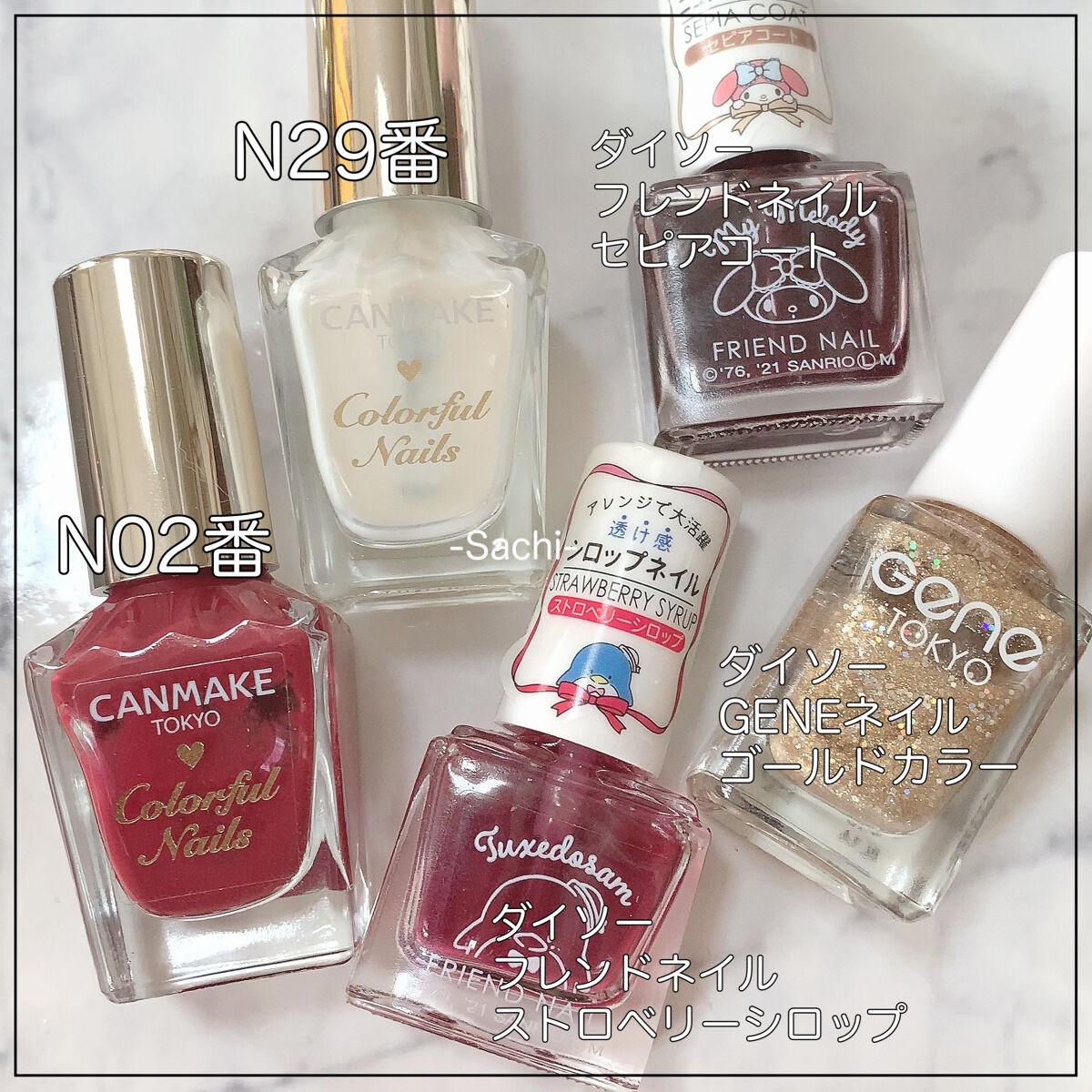| ネイルランキング第59位 | 全30種類あるという豊富さと、100円とは思えないオシャレな色ばかり♥ | 詳細を見る | |