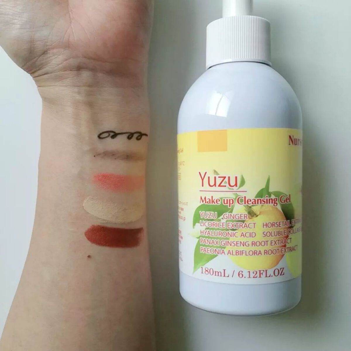 クレンジング、洗顔、アロママッサージ、美肌パック、スキンケアの5つの機能がこれ1本で叶うW洗顔不要のクレンジングジェルです♡ 国産ゆず成分のほか、シャクヤクエキス、ショウガ根油、スギナエキスと生薬としても使用される植物成分が肌のバランスを整え健やかな肌に導いてくれるそうですよ✨ コラーゲンとヒアルロン酸もたっぷりと配合されてるのが嬉しいです。 ボトルはポンプ式でプッシュするところをロックができるようになってます。 手に出してみると柚子の香りがとてもフレッシュ✨ ぷるとろな柔らかいテクスチャーのジェルで肌にやさしくスルスル伸びてくれます。 ジェルだけどメイク落ちもなかなか良かったしつっぱりもなくしっとり洗えたよ😆 爽やかな香りを楽しみながらやさしく洗いあげてくれるクレンジングです♡