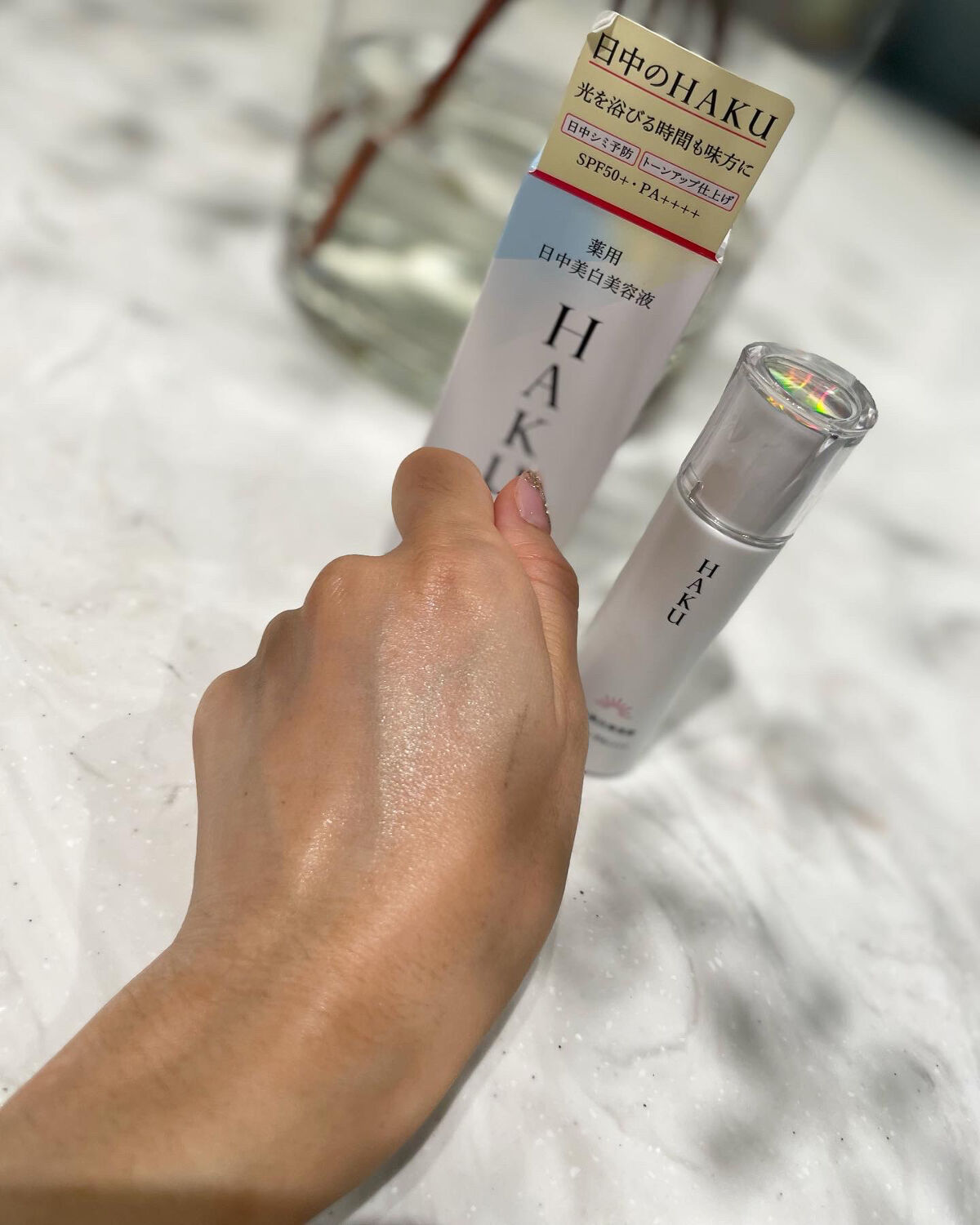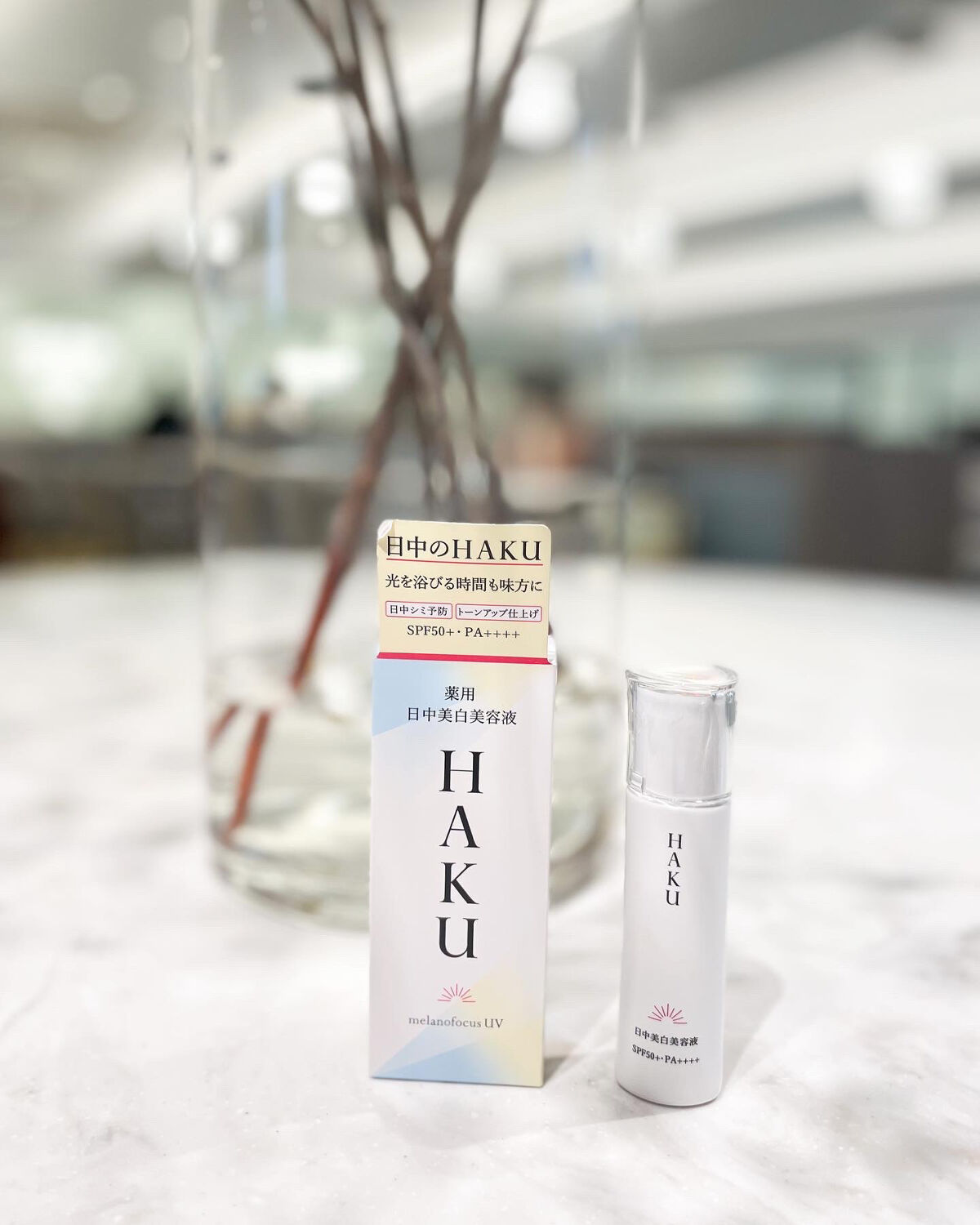- 販売名「メラノフォーカスUV」 SPF50+・PA++++ 日中のHAKU。光を浴びる時間も味方に、日中だからできる美白ケアのアプローチ。 シミ予防研究の先端技術を搭載し、日中ならではの美白ケアを可能にした、薬用日中美白美容液です。光を浴びる時間も味方にして、明るく透明感のある肌に導きます。 ○2種の美白有効成分を肌の奥まで届け効かせる。 ○日中の肌環境に着目し、Wデイエフェクターを配合。うるおいを与え届ける。 〇ファインレッドパールαが効果的に光を放ち、シミや色ムラを目立たせない。トーンアップ効果で、明るく透明感のある仕上がり。 〇みずみずしい美容液がスーッとなじむ。化粧下地としても使える。 ○無香料・アレルギーテスト済み・ニキビのもとになりにくい処方。 (全てのかたにアレルギーが起きない、ニキビができないというわけではありません)。