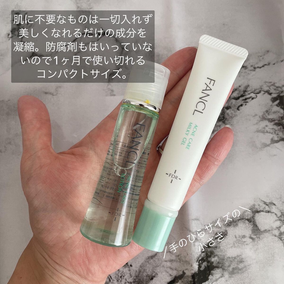 毎日のお手入れで繰り返す大人ニキビを防ぐ、ファンケルのアクネケアラインを使ってみたよ〜😍 化粧水はサラッとした水っぽいテクスチャーなんだけど、塗るとほんのりしっとり感もあり。 「ゆさぶり因子」と「毛穴蓋」に着目しているそうで、肌バリアを根本から整えてくれるみたいだから継続して使っていけたらいいなと思います✨️