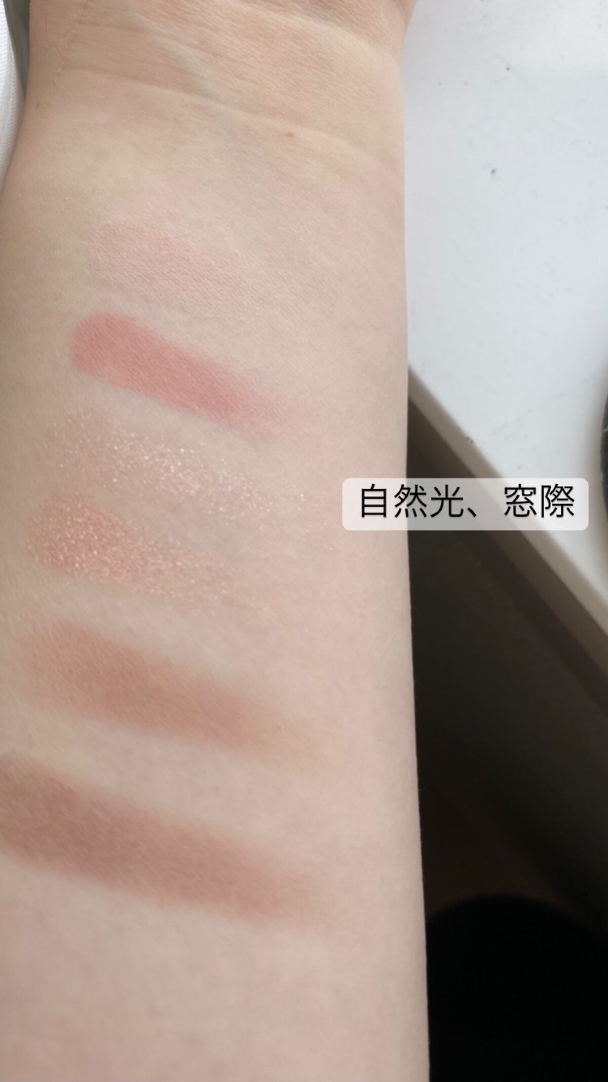 こちら一つ一つのサイズが大きいのと、どのシリーズも使いやすいカラーが4つ入ってるので普段するメイクに合ったカラーや、同じシリーズのアイシャドウと揃えるとばっちり色味が合うのと、本気で捨て色なしなのでオススメで大好きなチークです❣️ 03はシリーズ全体でも明るい発色な方なので、チークが主張しすぎずに柔らかな発色になります🍑 ブレンディングムードチークのいちごのやつは使ってても最後までいちごが残るように作られているというのを見たのですが、桃については調べてもわかりませんでした😭いまのところ減ってはおらずかわいい桃のままです🍑 一色一色つかってもかわいいですし、ぐるぐる全部をまぜても良い仕上がりになります🥰