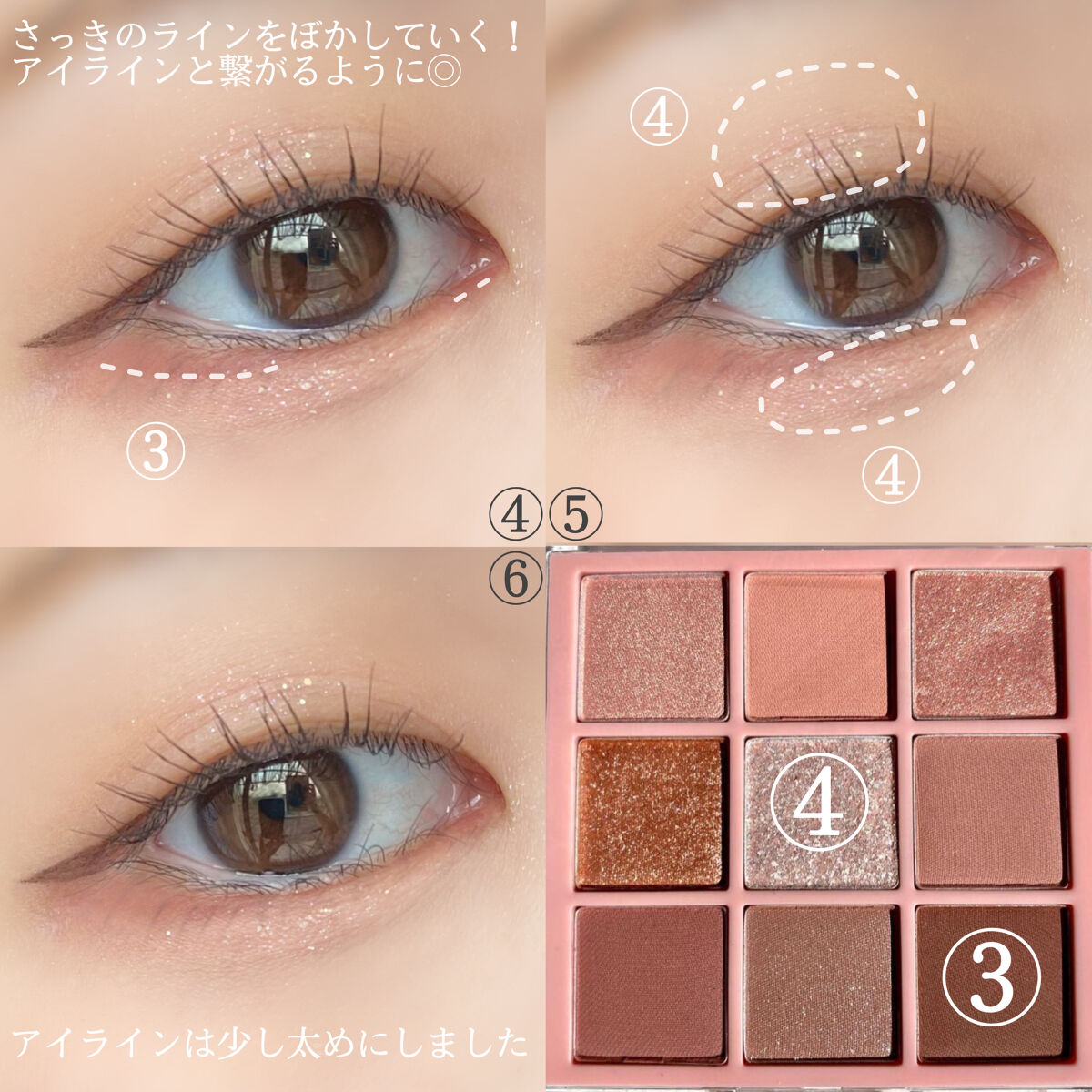 特に、下目尻の三角ゾーンをあけることで自然にデカ目になれるので、結構ポイントです🌼 アイシャドウも締め色から塗ることで、全体的にナチュラルに仕上げることが出来るし、簡単なのでおすすめ!