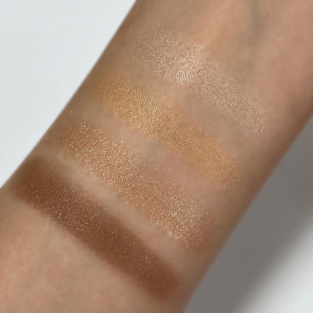 ¥300〜の展開でびっくりするくらい安いの😱❤️!! 500円なのに粉がやわらかくしっとりしています。 ラメは中国コスメならではの粒感とギラギラ感!すんごく綺麗です😍❤️❤️ ただ、ラメは飛びやすいイメージなのでアイシャドウベースつかったり筆を気持ち濡らしてから使うといいかも! 01ビスクシュシュ 02ラフィネボルドー 10シュルクマロン 迷ったら01か10が使いやすいかも✨!わたしは10推し!🥰 スウォッチしたので参考にしていただけたら嬉しいです❣️