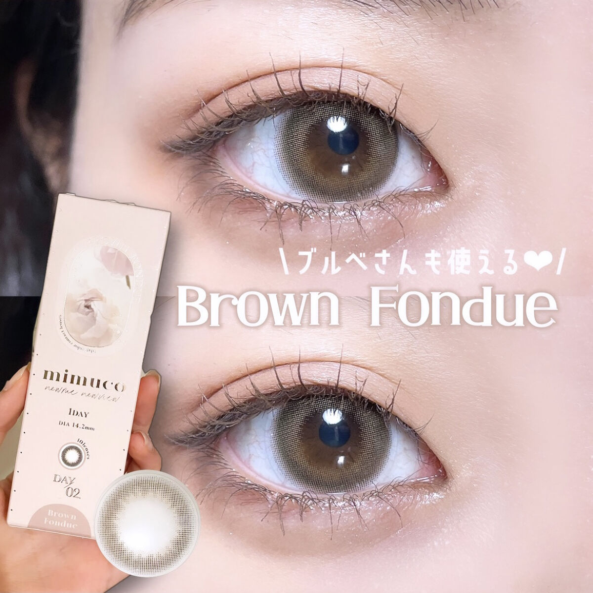 - ※2025年6月以降、商品パッケージ裏面・側面の一部表記を順次変更いたします。尚、これにかかる商品の交換・返品は承っておりません。 裸眼の色が明るい「茶目さん」、暗めな「黒目さん」、どちらの瞳の方が着けても不自然にならずあか抜けるレンズ。 日常使いしやすいブラウンベースのレンズをはじめ、肩ひじ張らずに可愛くなれるナチュラルなレンズとなっております。 ■mimuco ふんわり透明感セット キャラメルスフレ/ブラウンフォンデュ/メープルミルクティー/ポムカヌレ(各2枚入り) ■mimucoちゅるん透明感セット ゼリーグレー/シュガードーナツ/メローストロベリー/ピュレグレージュ(各2枚入り) カラーコンタクトレンズの不適正使用による眼障害の危険性等などがあります。 ●コンタクトレンズは高度管理医療機器です。不十分な洗浄・消毒など不適切なケアや、長時間・交換期間を超えた装用により、アレルギー性結膜炎、角膜感染症、角膜潰瘍等の重篤な眼障害が発生する危険性があります ●ご使用前に取扱説明書を確認してください 使用上の留意事項 ●眼科医院等を受診してからお求めください ●眼に異常を感じたら直ちにレンズ使用を中止し、お近くの眼科等で診察を受けてください ●医師の指示にしたがってご使用ください ●コンタクトレンズを装用する場合、自覚症状がなくても、眼科医院等での定期検査を受けてください ●レンズに不具合がある場合は使用しないでください