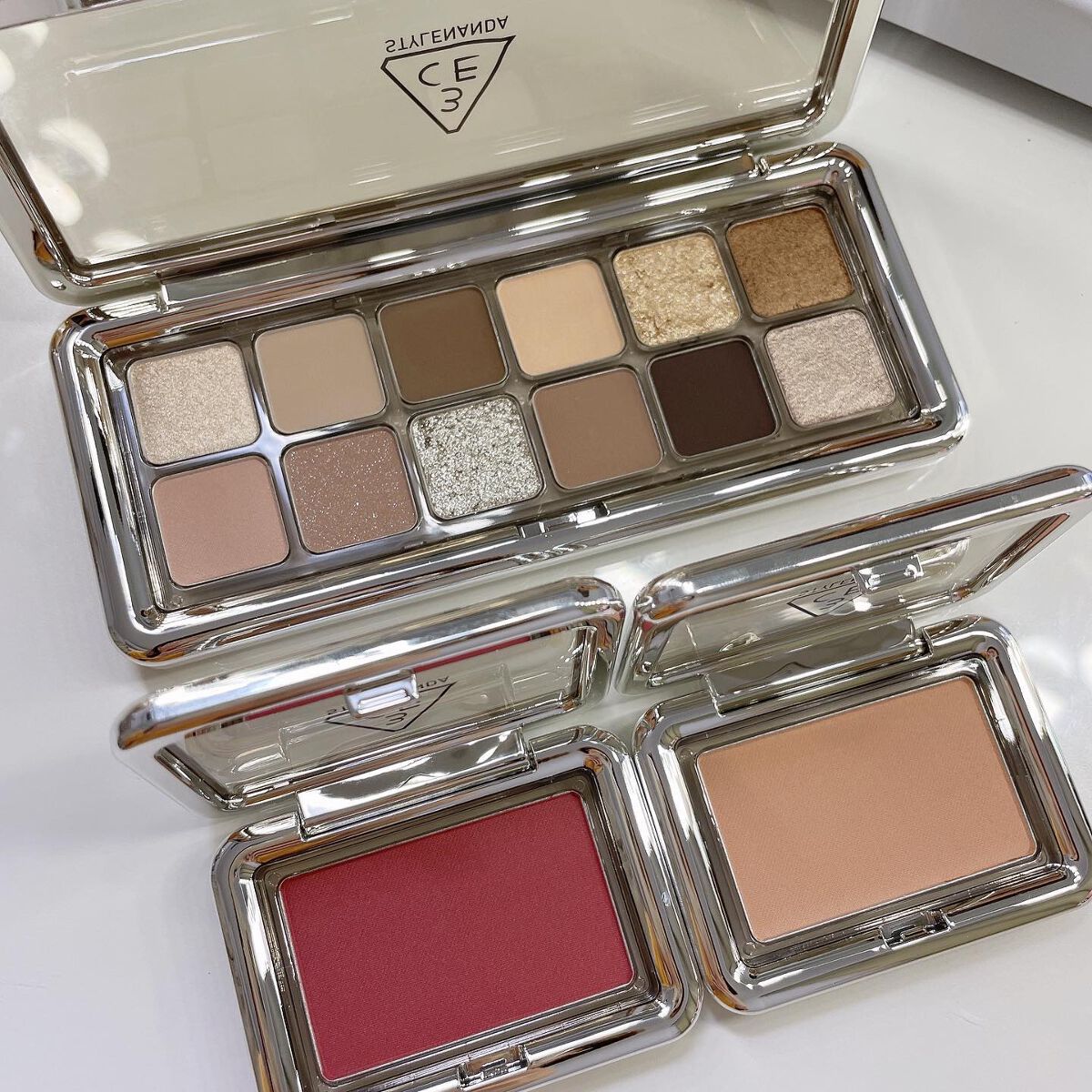 韓国コスメの3CEが日本再上陸✈️ 温かみのあるピーチベージュと深みローズ系カラーの組み合わせの#MOTION FRAMEをお試しさせていただきました。 ナチュラルな血色感を与えてくれるような色味!気分によって、ベージュ系メイクにしてみたり、ピンクトーンにしてみたり、、、と楽しめます♡ 粉質はしっとりしていて、指でもきれいにのせることができたし、ムラなく伸ばせました。