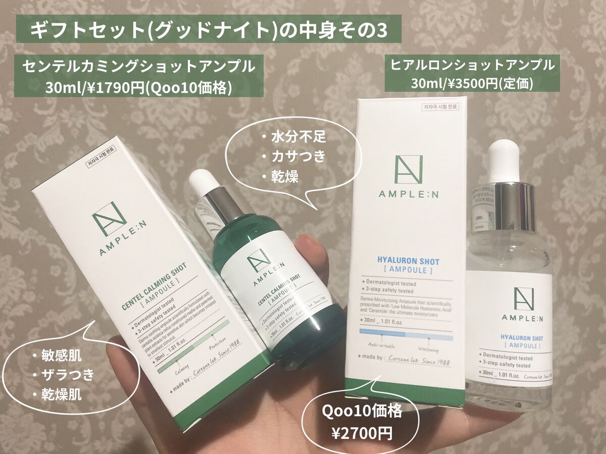 AMPLE:Nは36年間の製造歴史を持っており、韓国国内では老若男女かかわらず人気の会社で、エステサロンで美容成分を一番取り入れているアンプルに集中したブランドです✨ ペプチドショット2X、24Kゴールドショット、インタグルショットは見た目も華やかで使うのが楽しい✨ Qoo10とAmazonではリピート比率が何と6割超えで、スキンケア難民におすすめ💡
