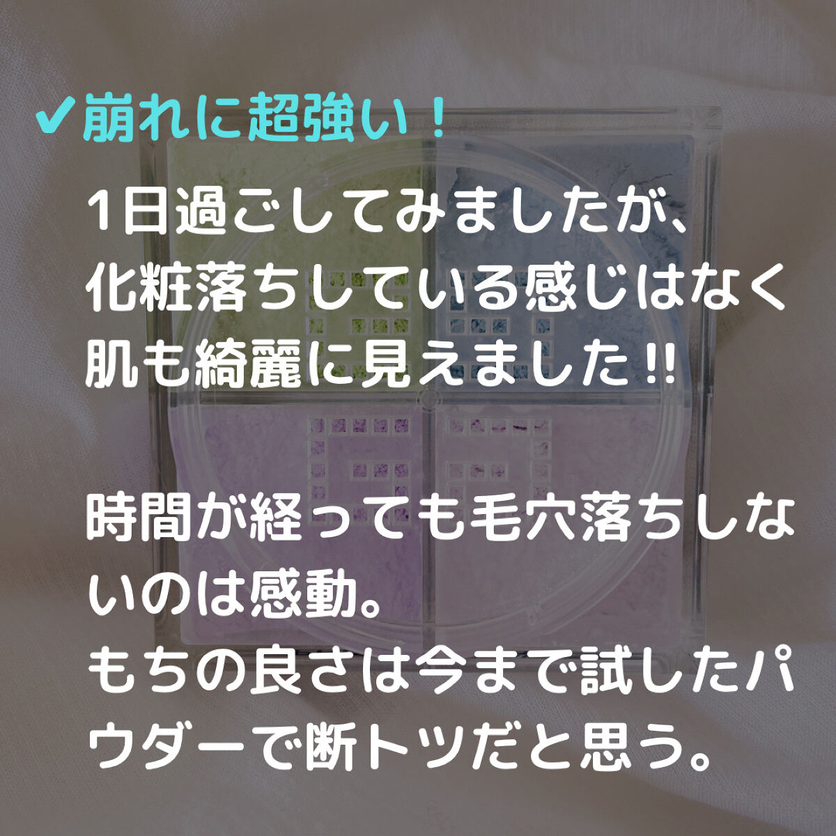 | フェイスパウダーランキング第22位 | 細かなピンクっぽいラベンダーっぽい粒子が フワッと密着してくれて 柔らかな顔の印象になる | 詳細を見る |