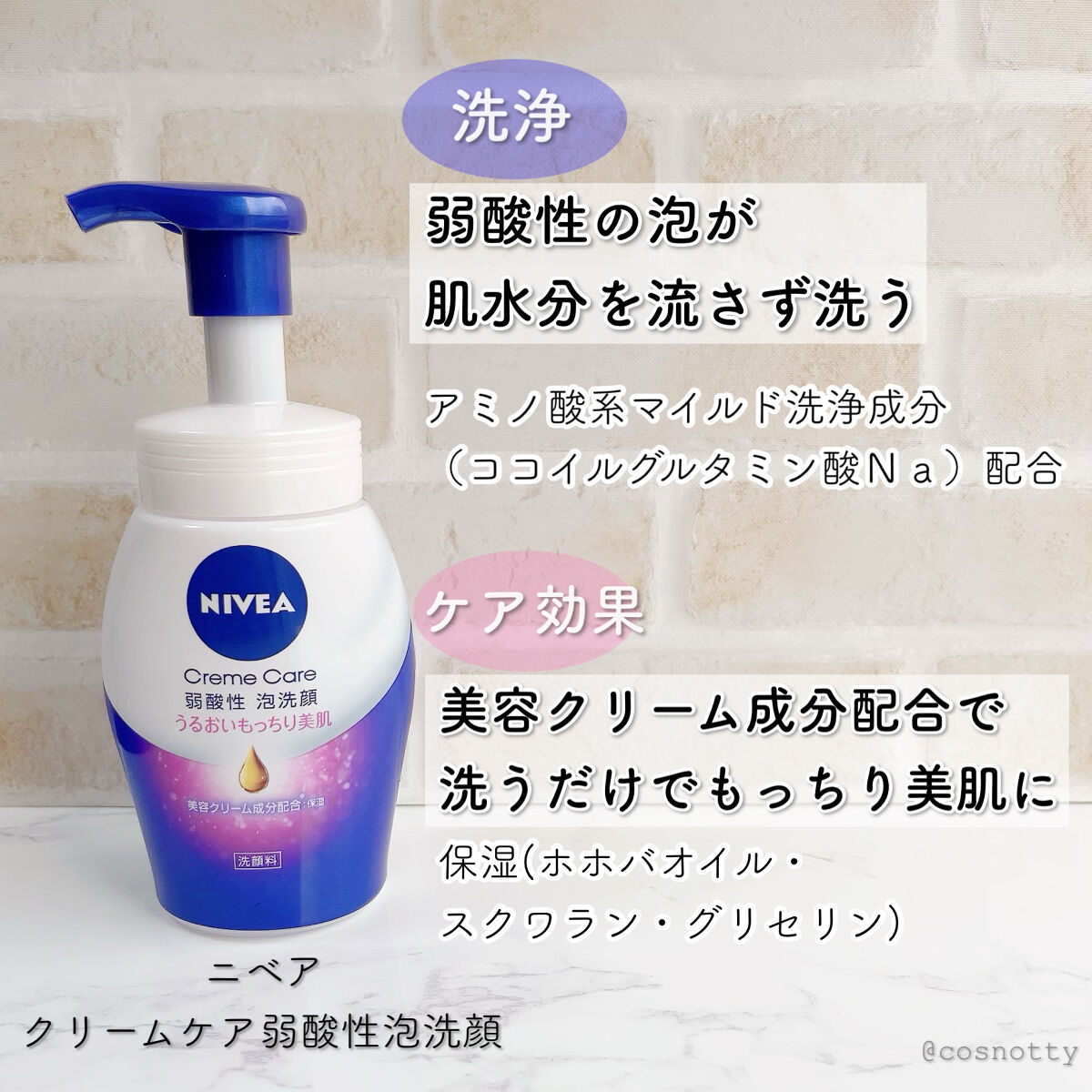 ニベアクリアビューティー弱酸性泡洗顔もっちり美肌ニベアニベアクリアビューティー弱酸性泡洗顔もっちり美肌本体150ml今使っている洗顔料がなくなった為購入泡で出てくるのが良いと思いました泡自体の質感はしっかりめで比較的密度が高そうな印象です手を...