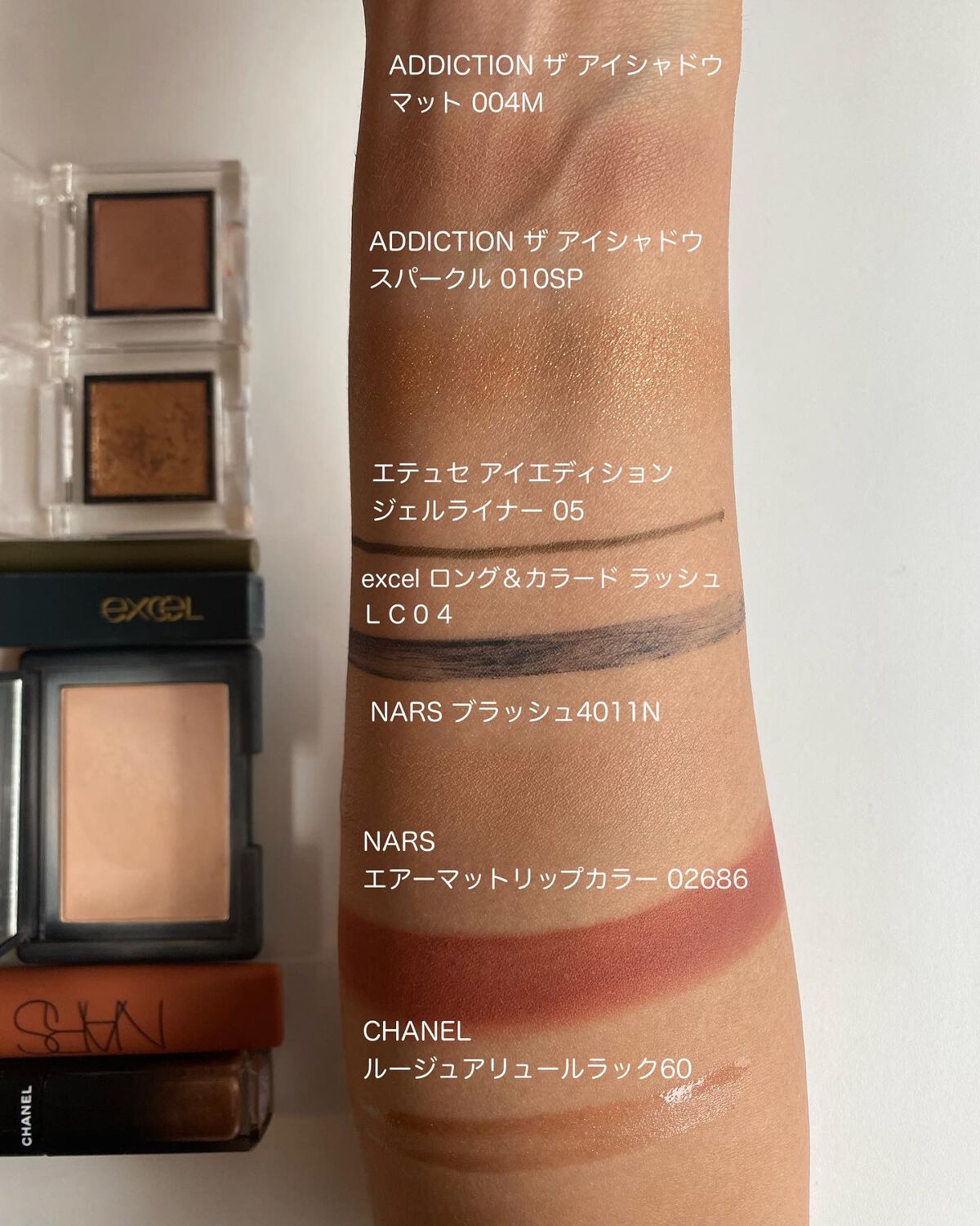 ⚑⚐2020.5.2・今日は#celvoke#ヴォランタリーアイズ14種類のスウォッチです✨・いま店頭に見に行けないのでポチっとする方の参考になれば嬉しいです✨・・✔︎右側上から07タン08マットベージュ09ローシェンナ10エクルベージュ15...