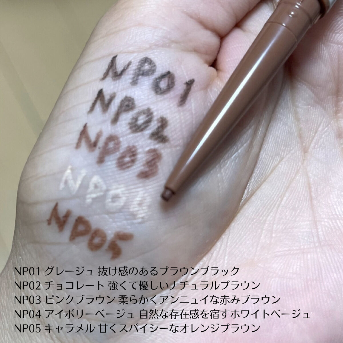 まさかのリキッドより落ちにくかったペンシルライナー。 目尻ラインと下瞼目尻毎日使ってる。ほんとに落ちにくいし、芯の硬さも丁度いい。 NP01のグレージュがシリーズの中で1番暗いカラーだよ。一本使い切ったからリピ! 黒みたいに濃すぎず瞳の色と馴染むから使いやすい!