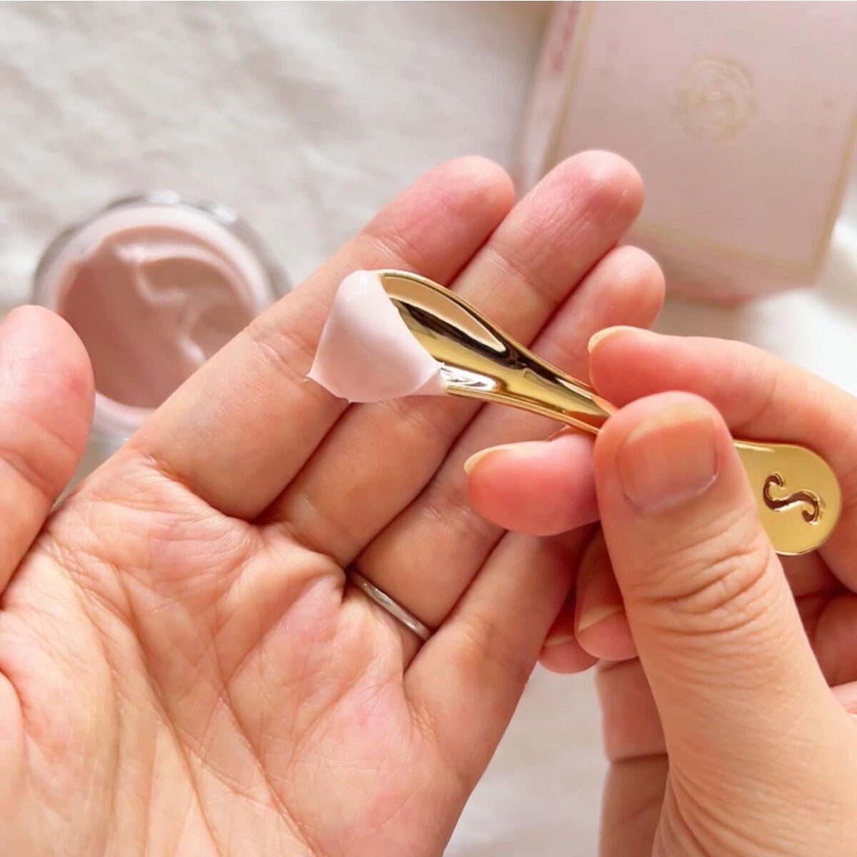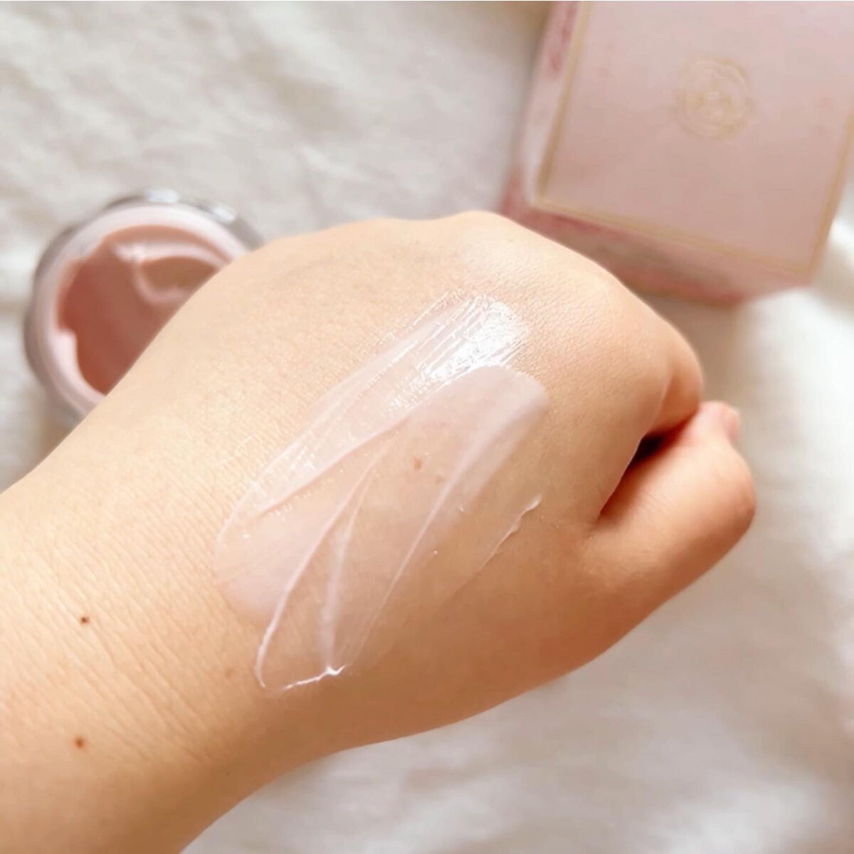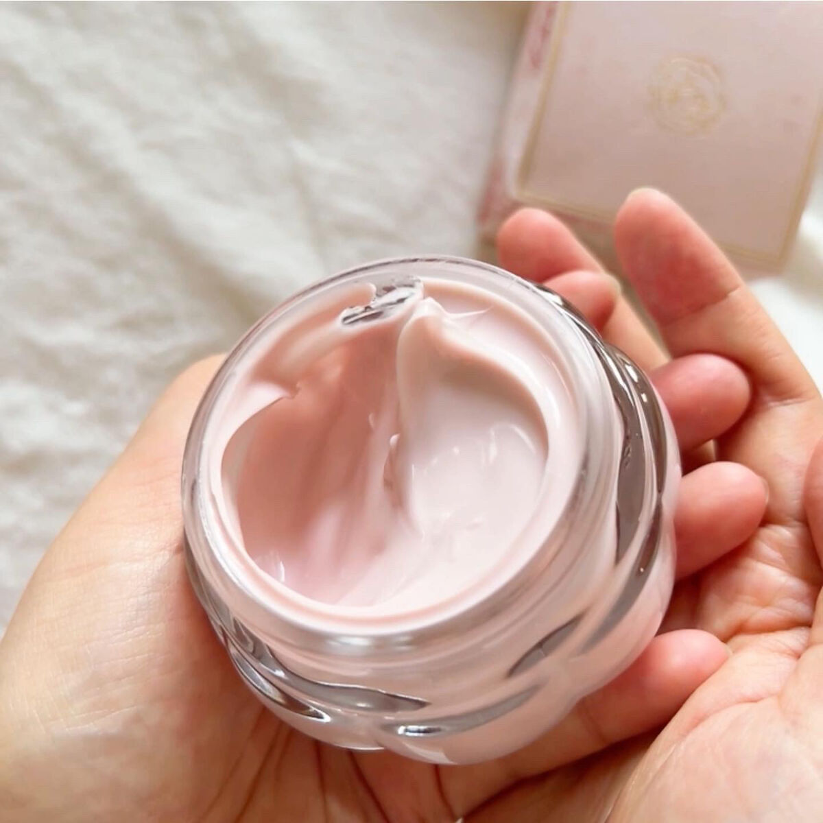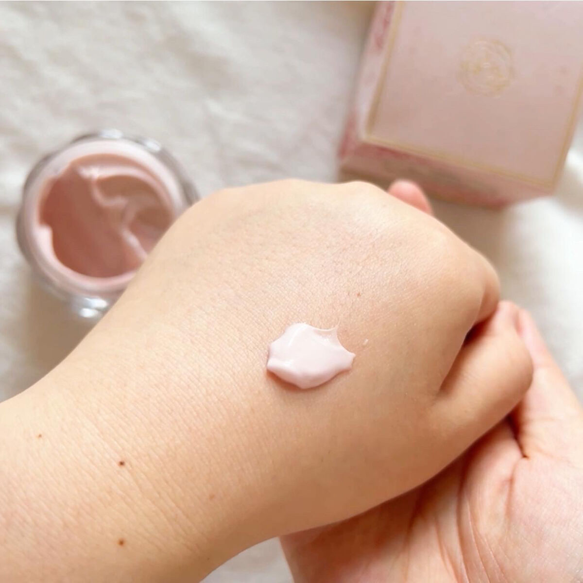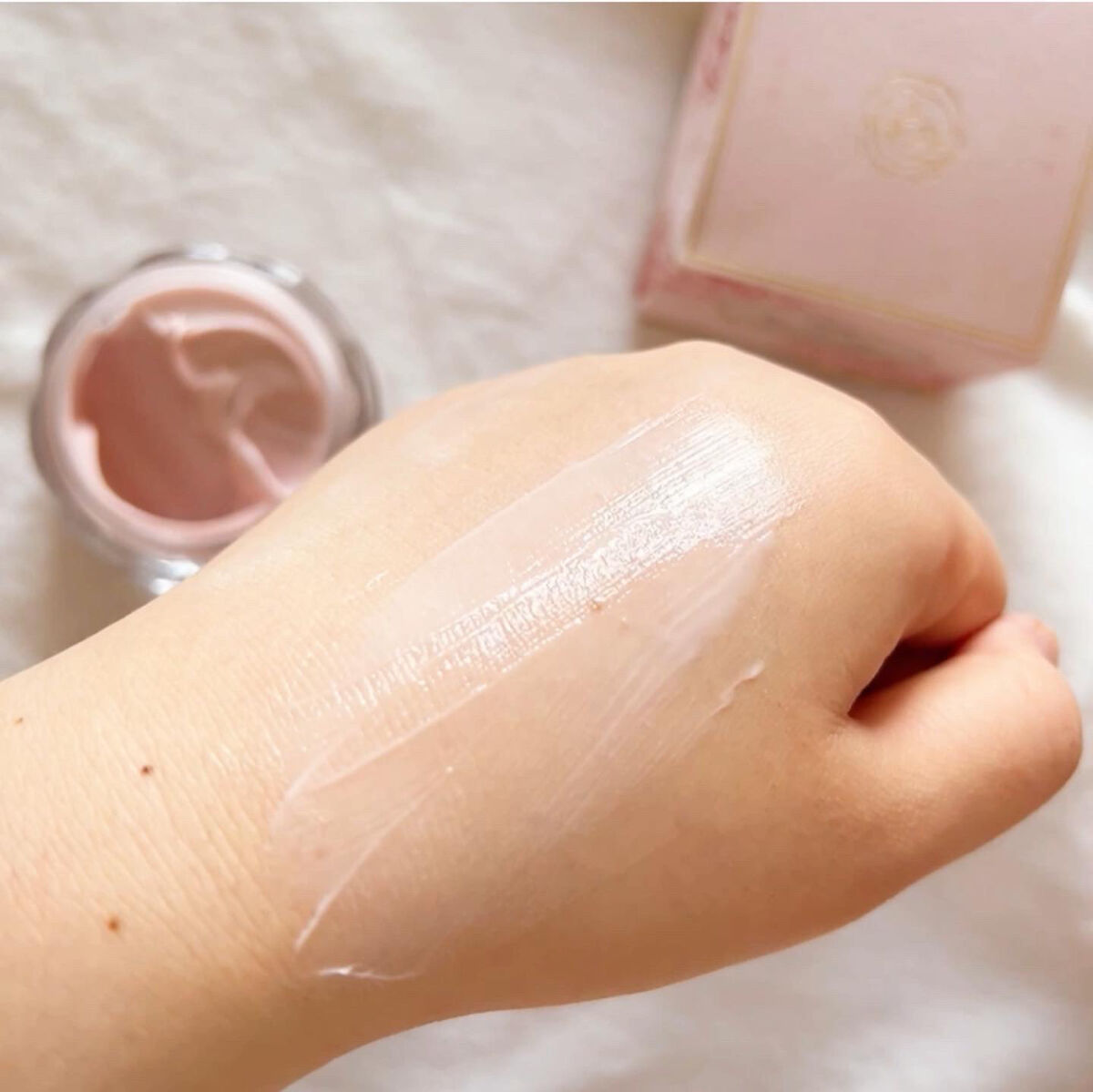 シルクのような輝きのオーラをまとう凝縮美容オイル。〝ローズの生命力〟が宿り、光を放ちいきいきと輝く肌に。 オイルに花びらがしっかり入っていて、一緒に花びらが出てこないか心配ですが、花びらのかけらがちょこちょこ出てきて気になりましたが、見かけより出てこないです🙇♀️ クリーム自体は、とても柔らかいテクスチャーで伸びも良いです。ローズのオイルとの相性は良いのですが、他のオイル美容液と合わせると、分離するような感じになりました🥲