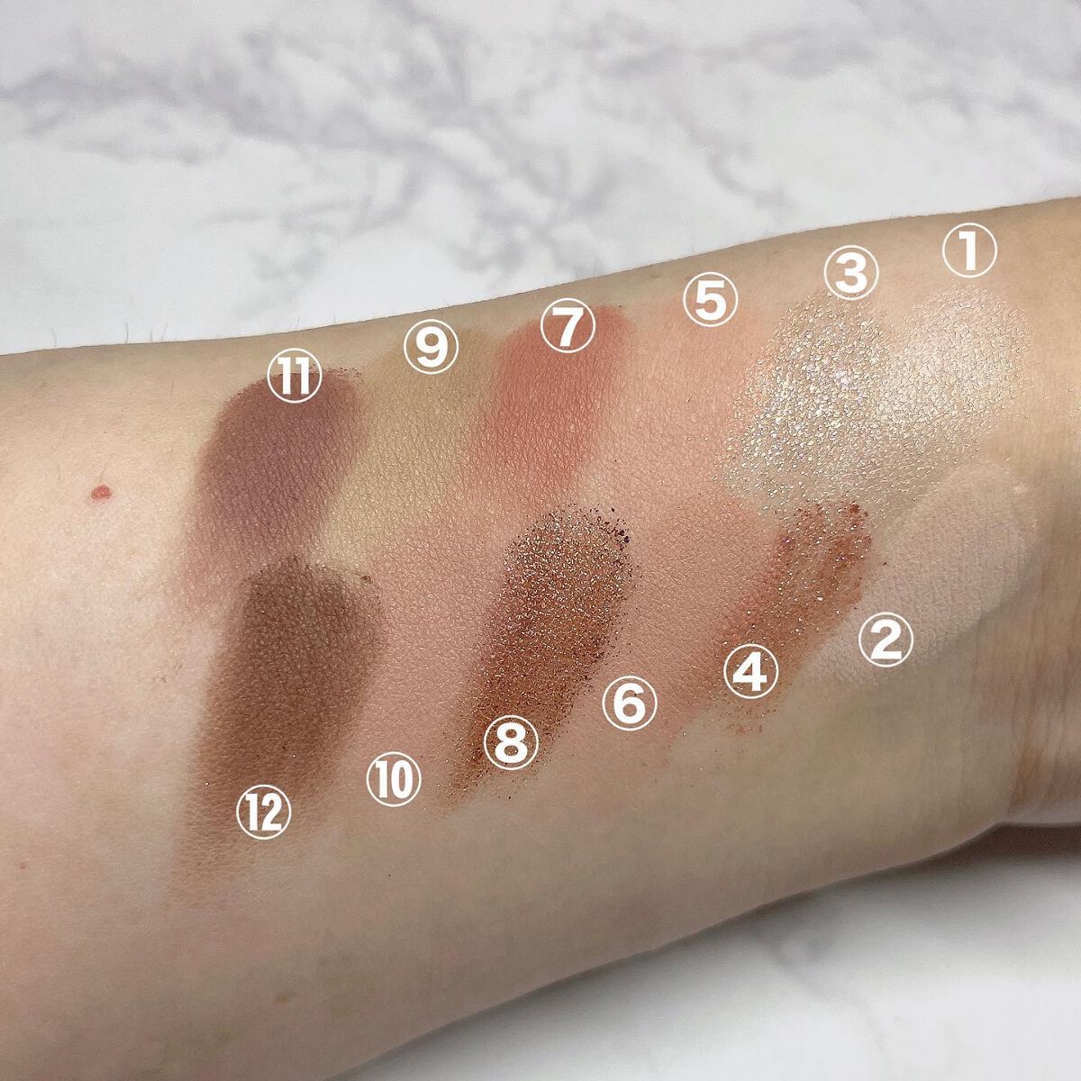 やさしい秋風のように落ち着いたムードが漂うメローブラウンパレット 綺麗なブラウンが多くて、色々組み合わせて使えてとても使いやすい テクスチャーも、マットや小さなグリッターが入ったマット、小さなグリッターなどがあるのでいろんな組み合わせで楽しんでいます 温かみがある色味なので、今の季節やこれからの季節にたくさん使いたいです