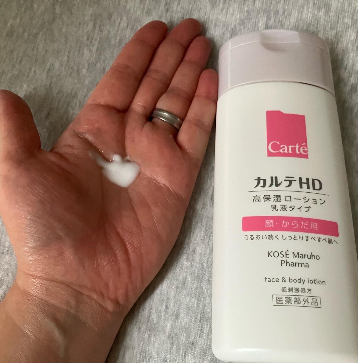 - 【高保湿フェイス&ボディローション】 顔にもからだにも。しっとりやわらか肌つづく。 信頼の保水有効成分「ヘパリン類似物質HD※」配合、低刺激処方の高機能フェイス&ボディローションです。 ヘパリン類似物質HDが、気温・湿度の変化で乾燥しやすいからだの肌のうるおい構造(角層ラメラ)を立て直し、しっとりやわらか肌に導きます。 2種のこだわりオイル配合で、しっとりするのにべたつかず、なめらかにのびひろがる使用感。敏感な肌でもまさつによるストレスがなく、全身をうるおいで満たします。 カルテHDシリーズとしては初めてお子さま(3歳以上)にもお使いいただける商品。 ・ボトルタイプ(220mL) ・ポンプタイプ(410mL) ・つめかえ用(370mL)の3種でラインアップ。 ご自身の保湿に、ご家族や大切なかたの保湿に。みずみずしくなめらかなうるおいが全身を包み込むフェイス&ボディローションです。 ※保水有効成分ヘパリン類似物質のこと <販売名:HD フェイスボディL>