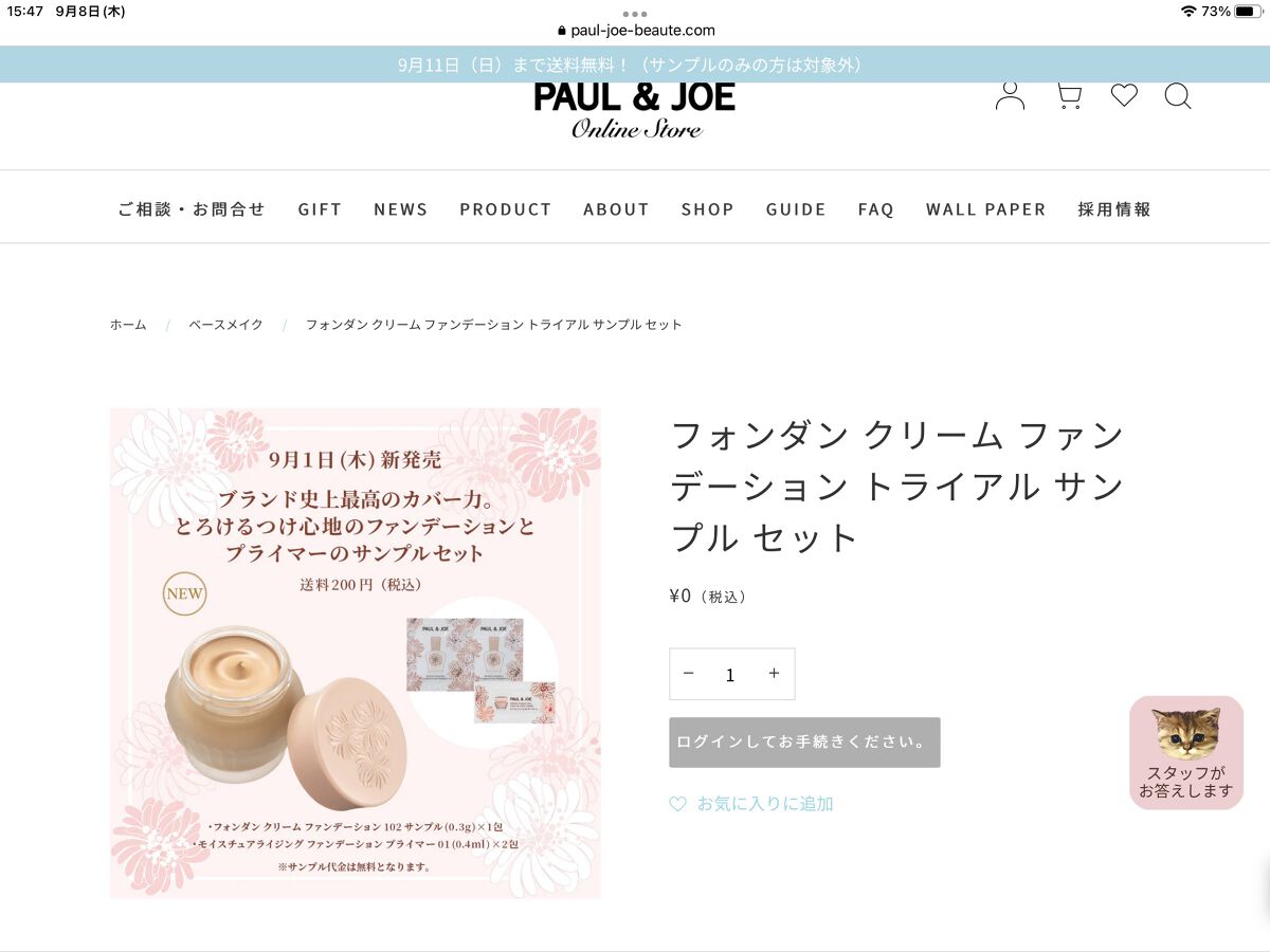 🐾ポール&ジョーのサンプル🐾店舗が近くになくても、(店頭でサンプルだけ貰いにくい人にもw)公式通販だと送料分300円で注文できます💕※注意点はメール便ではなく、宅配物(佐川急便)で届くので在宅受取or宅配BOXが必要でした😂💦たぶん、メール便...