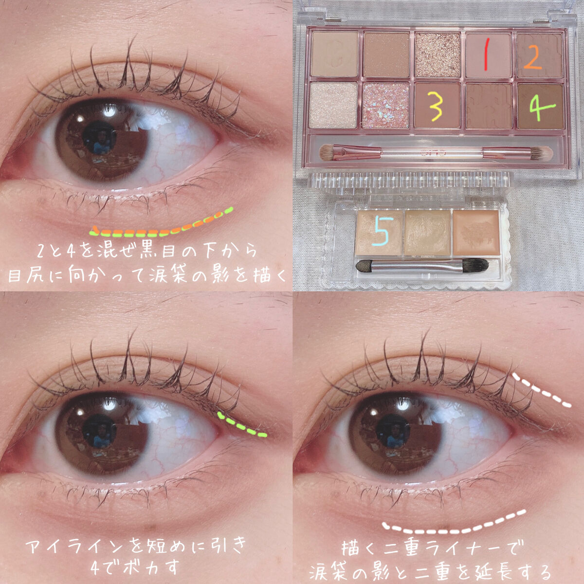 アイシャドウ👀・CLIOプロ アイ パレット01SIMPLY PINK グリッター✨・PERIPERAデュオ ポケット グリッター シャドウ03SALTED SUGARPLUM 涙袋のコンシーラー👧・キャンメイクカラーミキシングコンシーラーオレンジベージュ マスカラ💇♀️・rom&ndハンオールフィックスマスカラL02LONG ASH アイライン✏️・キャンメイククリーミータッチライナーダークブラウン・CEZANNE極細アイライナーEX20ブラウン