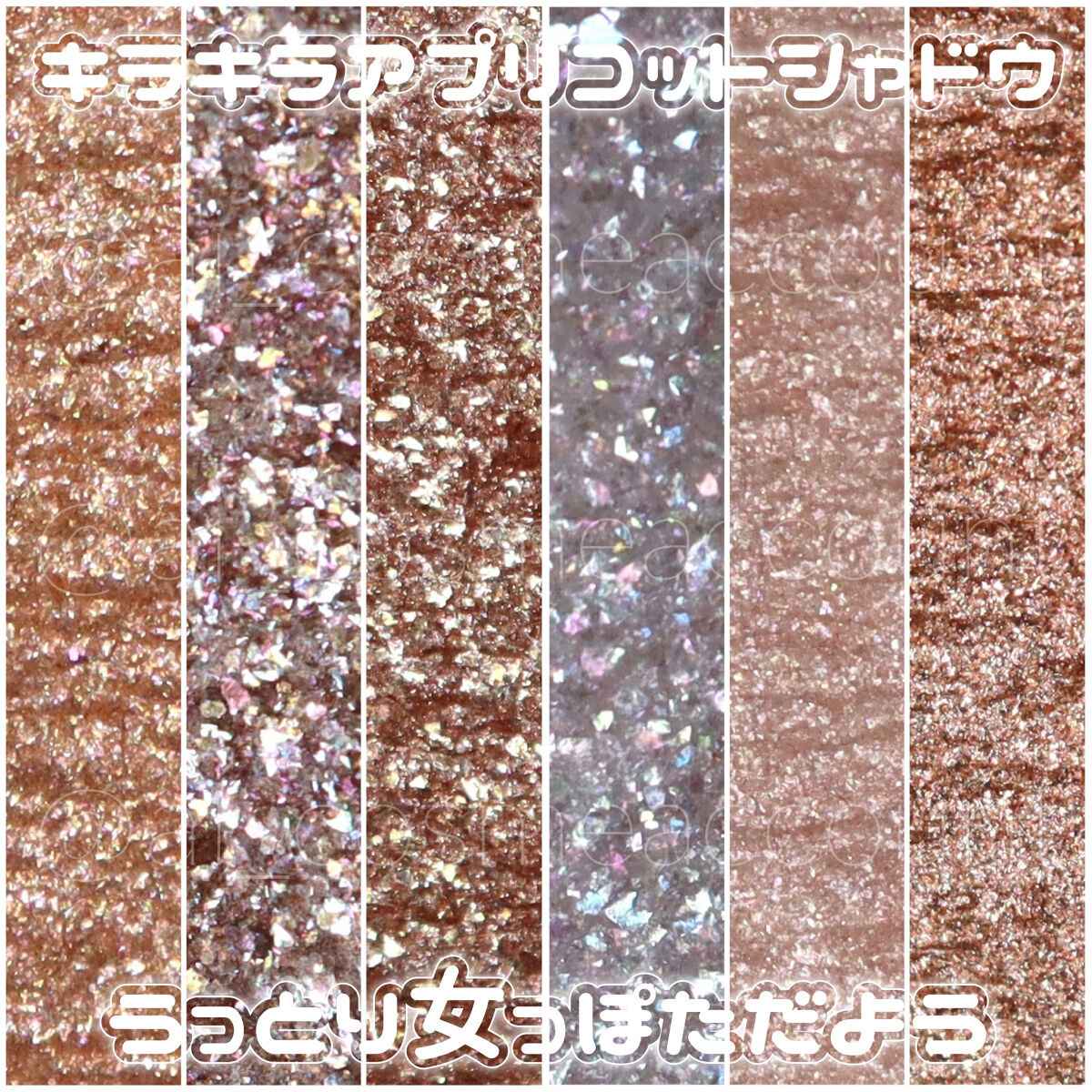 S[SHINY]“高輝度ガラスパール×カラーパールの美しいきらめき”↓S01.ピュアブロンズ“上品に艶めくブロンズゴールド” R[RICH]“リッチな高発色と繊細なツヤで色遊びを楽しめる”↓R01.バニラムスク“光を集めるハイライトベージュ” F[FLUFFY]“ふんわり・しっとりの新感覚 肌と同化するセミマット”↓F01.ラストナイト“血色感を潜ませるメロウなピンク”