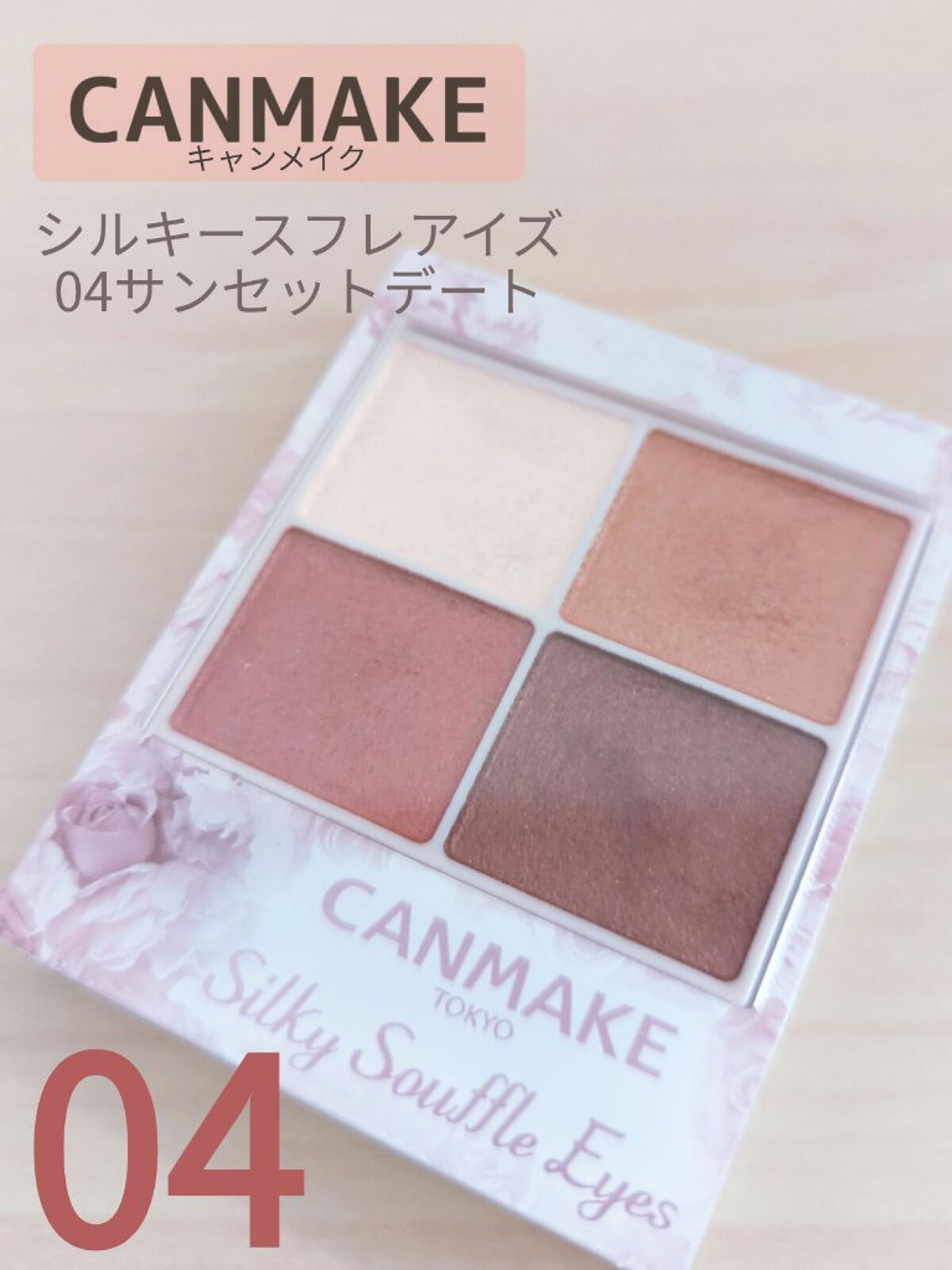 【ぬくもり夕焼けカラー♡しっかり上品発色パレ】キャンメイクシルキースフレアイズ04サンセットデート825円(税込)大人気「シルキースフレアイズ」のぬくもりブラウン系4色アイパレ!私はこのシリーズの素敵さを最近知ったからいまさらながら集めている...
