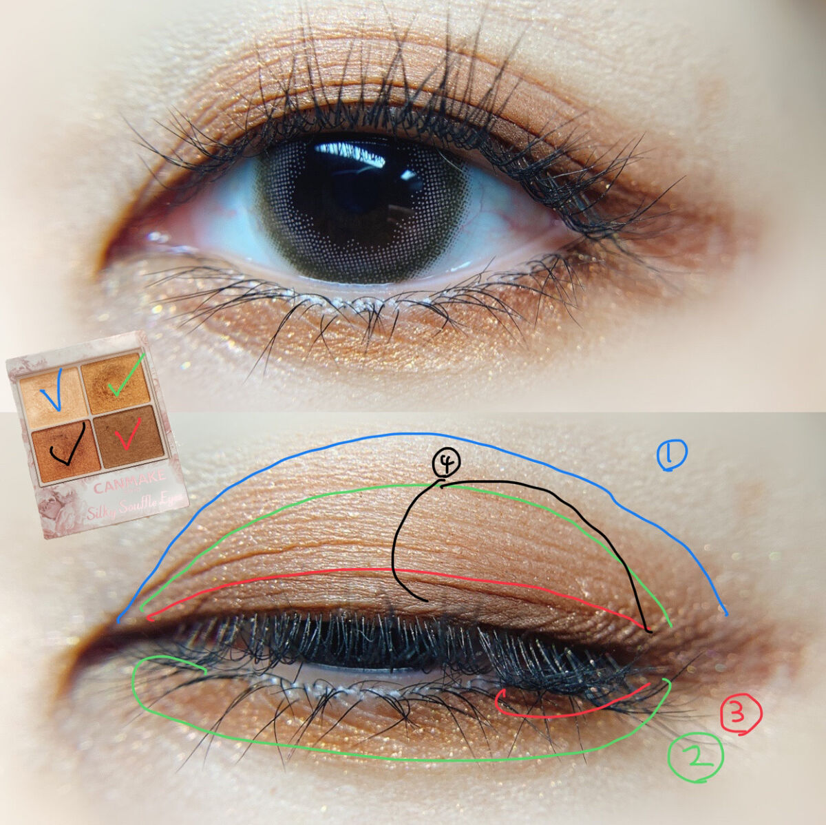 発色が良くて、左下のオレンジがパール感ありとても綺麗です🍊気に入りすぎて、今シーズンヘビロテしています。 柔らかいブラウンの色味が合うかなと思い使用しています✌️ 細かく描けるので目尻にハートマークを描いてみました🧡 ウォータープルーフなアイライナーは助かります。 ショート筆リキッドについては、先日別投稿で詳しく紹介しているので良かったら見てください😊