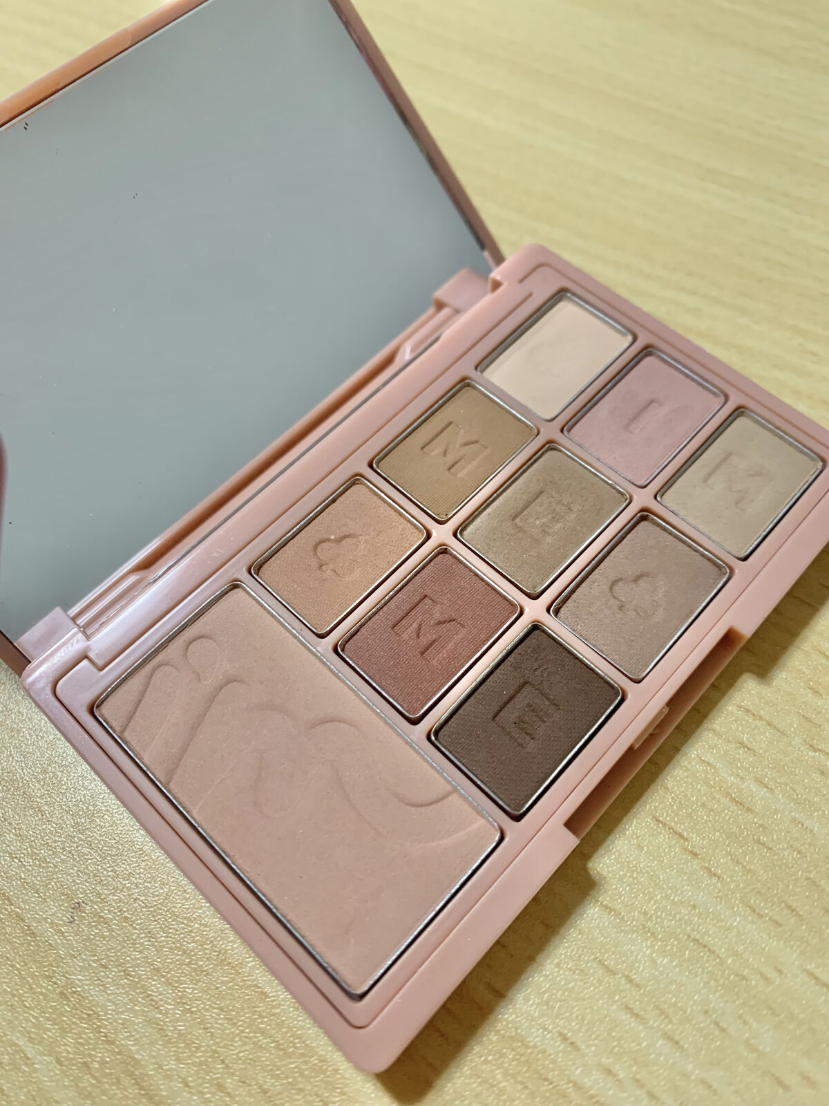 パケが遊び心のある、なんだか懐かしい絵柄の変わるカードみたいになってる。陰影をテーマに構成された手のひらサイズの10色アイパレットになっていてこれ一つで全顔完成できちゃうので持ち運ぶにはすごくいいかも! ブラウンなパレットだけど中にはピンクが入っていたり、オレンジっぽいのが入っていたりするのでその日の気分で違う雰囲気にできるところがいいところ✨ 色味も暖かみがあって可愛いのでこの1週間バンバンつかうぞー!