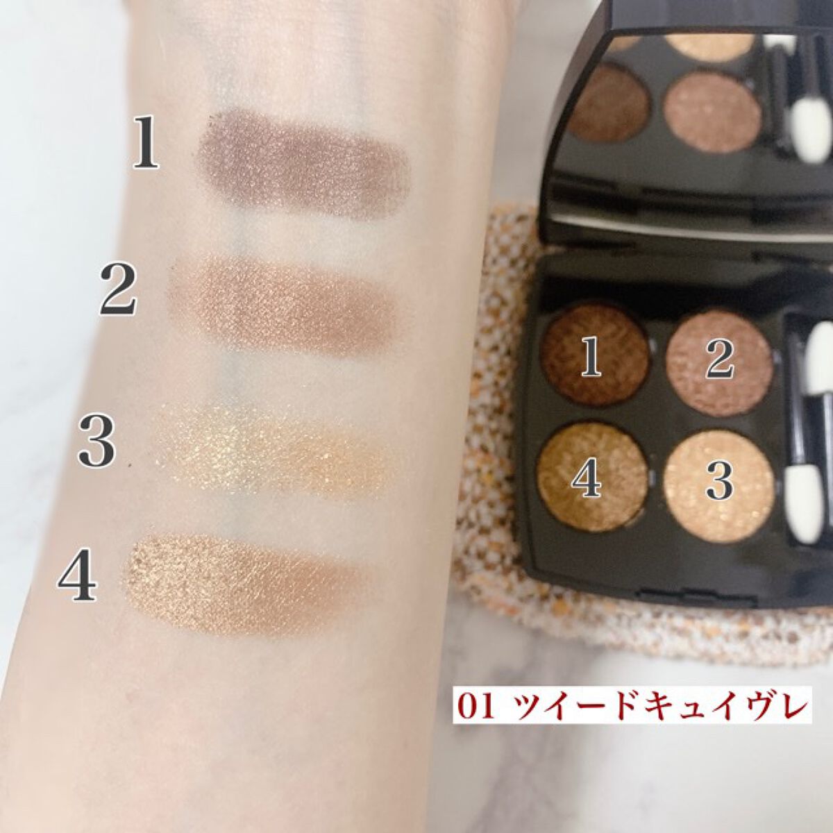 アイシャドウが素晴らしい👏 ブラウンゴールドの発色が美しい(*˘︶˘*).。.:*♡ 2022年9月9日発売✨数量限定✨ CHANEL レ キャトル オンブル ツイード 01ツイード キュイヴレ またメイクしますᕱ⑅︎ᕱ"🩷️