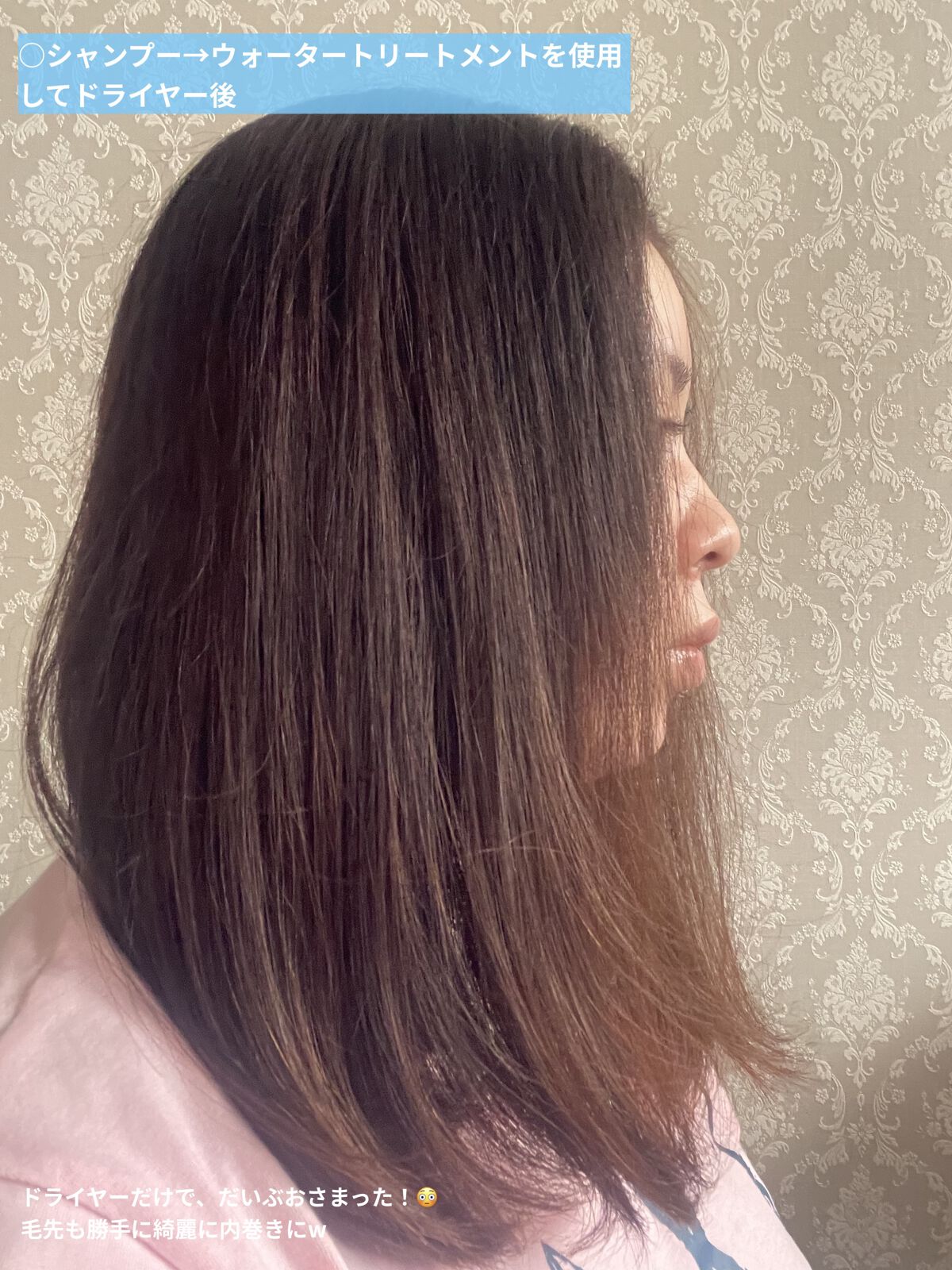 タオルドライした濡れた髪にセミロングヘアで500円玉3~4個分出して髪につけたて乾かしたら感動するほどサラサラでまとまるし髪がトゥルトゥル♡ 試した事ない人ほんと1回でいいから試して欲しいくらい髪がトゥルトゥルになって感動する✨ #ウォータートリートメント #エッセンシャル #プレミアムウォーター#エッセンシャルプレミアムウォータートリートメント
