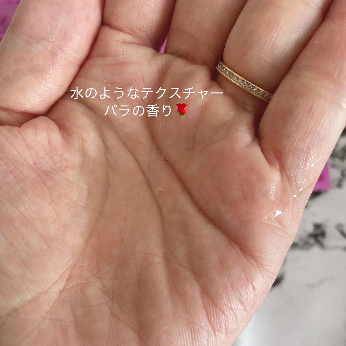 植物由来の保湿成分及びオーガニックエキスを配合した製品で 美容液なのにべとつかなく毎日使うことでハリとツヤのある肌に導いてくれます。 水のようにサラサラとしていて顔に伸ばすとサラッとベタつかずにスッと浸透してくれました。香りは無臭なので他のスキンケアとも合わせて使いやすいです。 ポンプタイプで出しやすく最後まで清潔に使えるのもいいPOINTでした!!