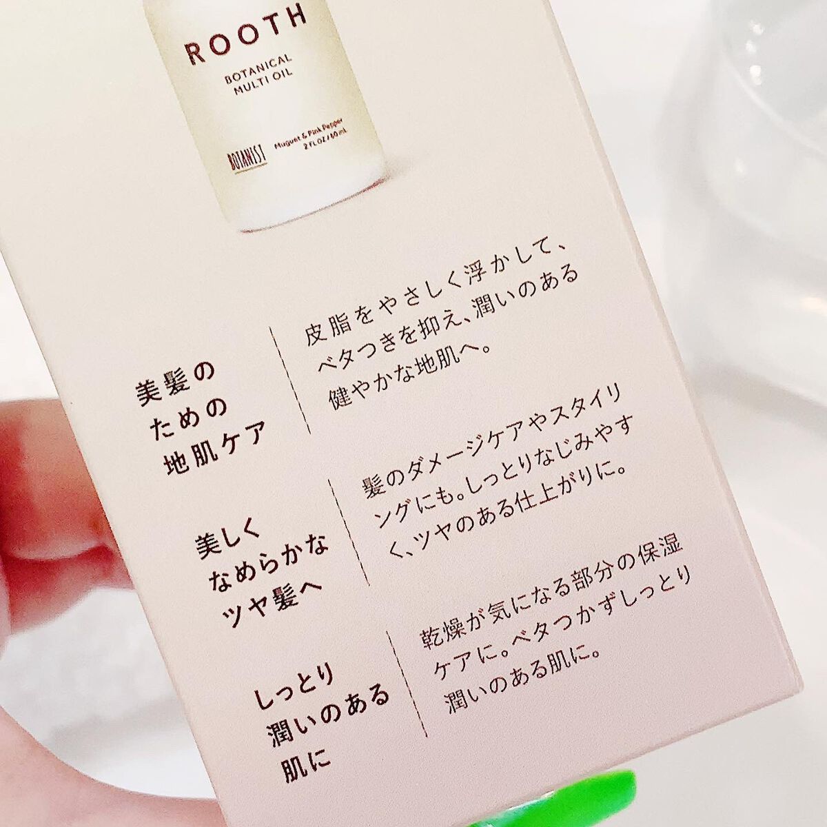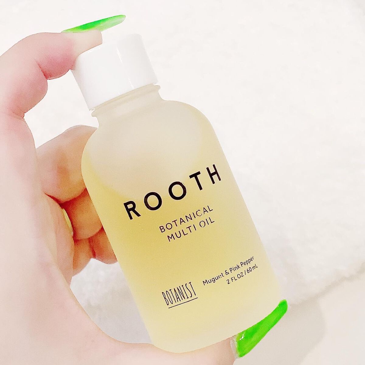 ボタニストから新ライン『ROOTH』誕生✨ 髪・肌はもちろん地肌にも使えるマルチオイル🫧 シャンプー前に使う、美髪のための地肌ケア 皮脂をやさしく浮かせて、ベタつきを抑え、潤いのある健やかな地肌へ✨ とろっと、重めなオイルなので気持ちいい🥰 香りも甘さがありながらもピリッと大人なアクセントがあって 泡立ちが良い 週1回のスペシャルケアで地肌ケア頑張ってみます🌈