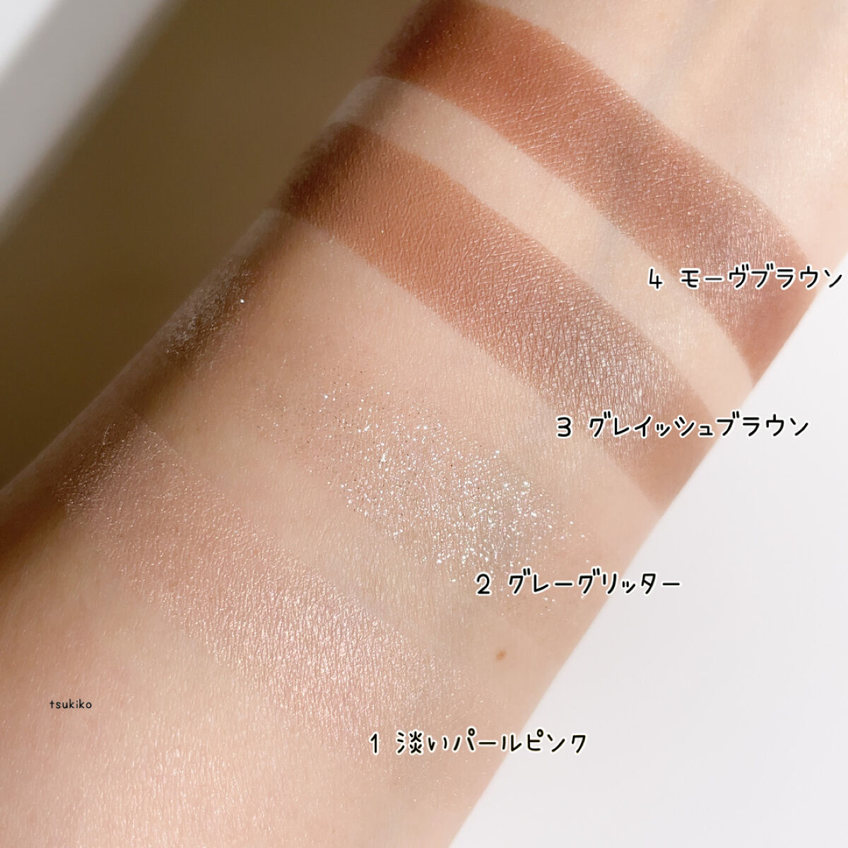 色・光・質感を1つに詰め込み、毎日のアイメイクのバリエーションを膨らませる4色のアイシャドウパレット。 03 ウィンターグレイ:シャープで上品な目元に仕上がるグレイッシュブラウンパレット 全ての色味が絶妙によい! お手頃価格で嬉しい✨