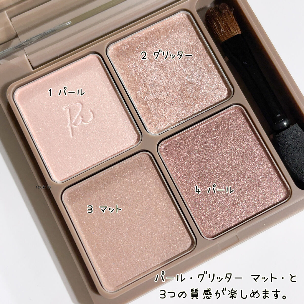 - 2021年3月15日(月)予約販売開始 色×光×質感を1つに詰め込み、毎日のアイメイクのバリエー ションを膨らませる4色のアイシャドウパレット。 ・発色・質感を調整しやすいチップ&ブラシ ふんわり仕上げたいときはブラシ しっかり発色させたいときはチップを その日の気分に合わせたアイメイクが楽しめる ・ 毎日のメイクが楽しくなる4つのカラー ・こだわりの3つの質感 シマー・プリズム・マットのテクスチャー それぞれのカラーがしっかり色づきピタッと密着 ●保湿美容液成分:セラミド・ヒアルロン酸・モモ葉エキス 配合。 ●ミラー・チップ&ブラシ付き。