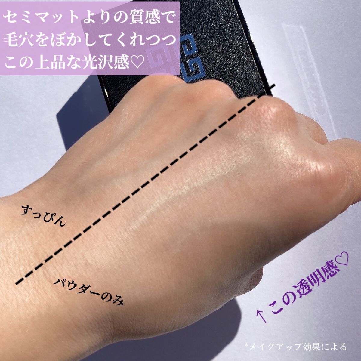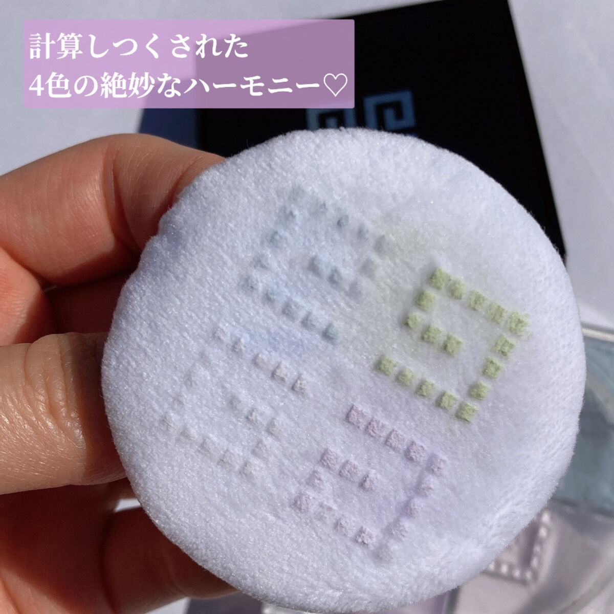 こちらのパウダーは“人の肌色は単色では表現できない”というブランドの創始者の考え方によって生まれたんだそう! 私が使ってみたのは透明感*が爆上がりしそうなNo.1パステル・シフォン! そして、この4色が絶妙なハーモニーを奏でていて、"白く"なったり"トーンアップ"させるというより、『お肌の透明度*をあげる』と言った感じ。 質感はふんわりセミマットよりで、毛穴もぼかして目立たなくしてくれるのですが、なんとも言えない上品な光沢感が生まれるのが不思議。 No.1はお肌の透明度*を上げたい方に特におすすめ◎テクニック要らずで簡単に透明感*をプラスできるアイテムです!