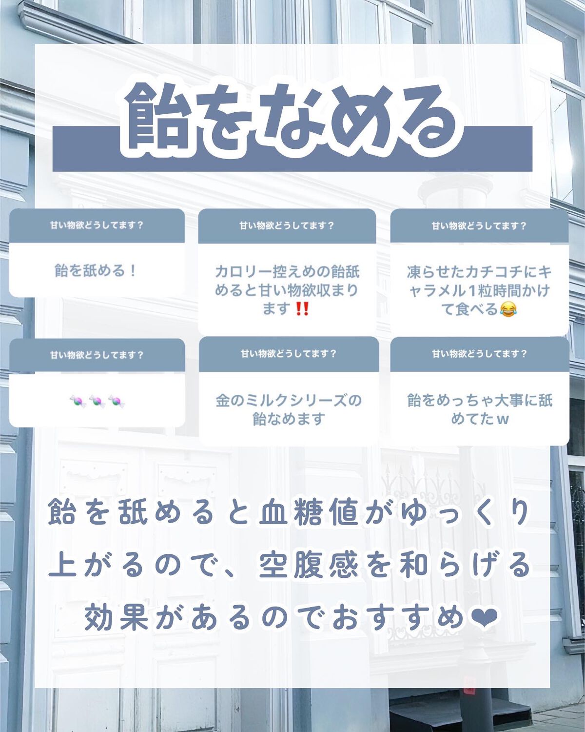 とはいえ!今回も私がフォロワーさんに教わった『甘いものを欲を抑える方法』です!🥹🥹(皆さんありがとう〜!) 読んで『確かにこれ効く…!!』と思うものや『この方法があったか!!!』という新しい発見もあったのでシェアします!🦍 そろそろ食欲の秋…🍠おいしいものもどんどん出てきますが、今回の方法を保存してぜひ役立ててくださいね!🥰🥰
