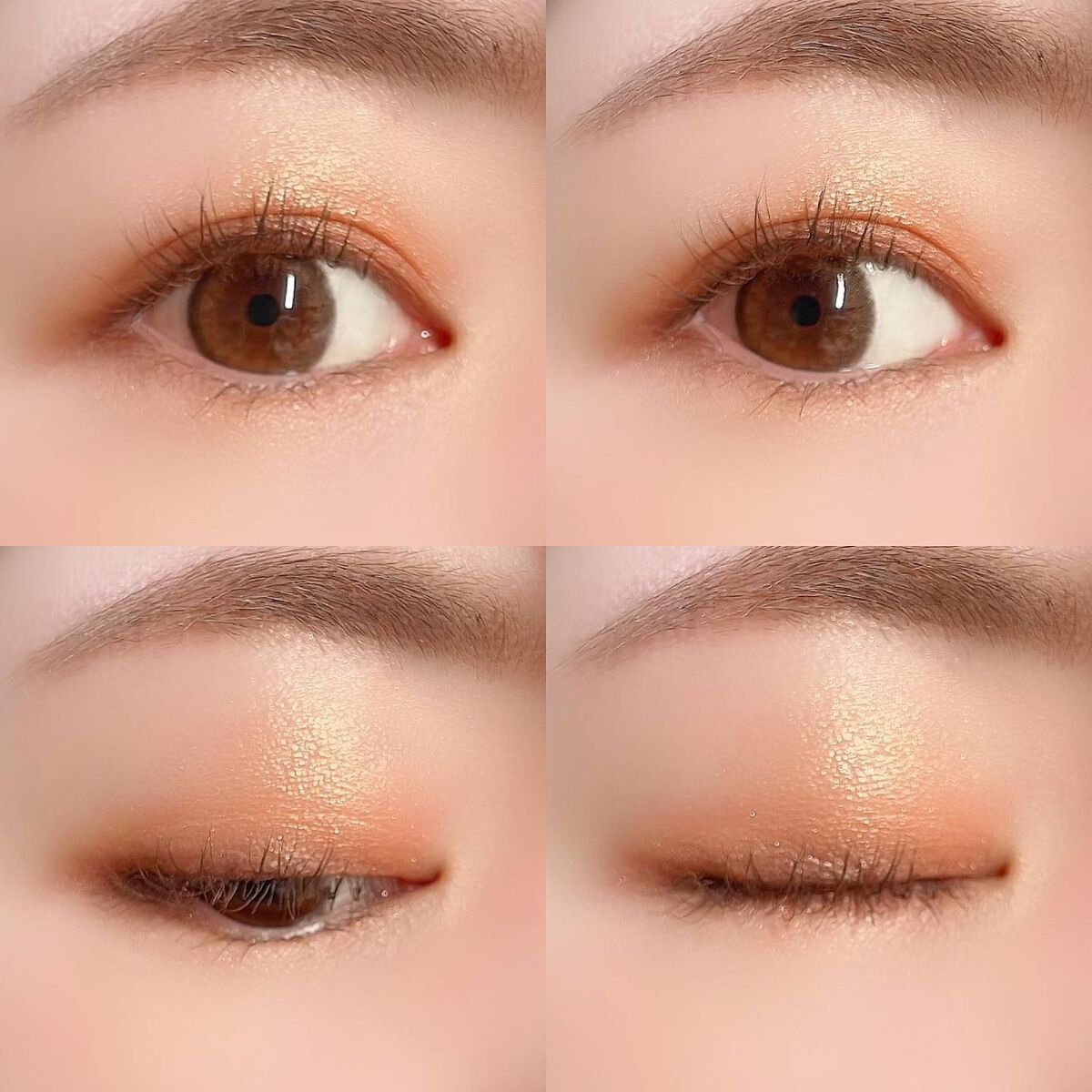 色味は秋らしい温かみのある配色で、目元を華やかに演出します🍁 全体的に細かいラメが含まれており、上品なツヤ感を演出します✨ しっとりとした粉質で、まぶたにしっかりと密着します👁️🗨️